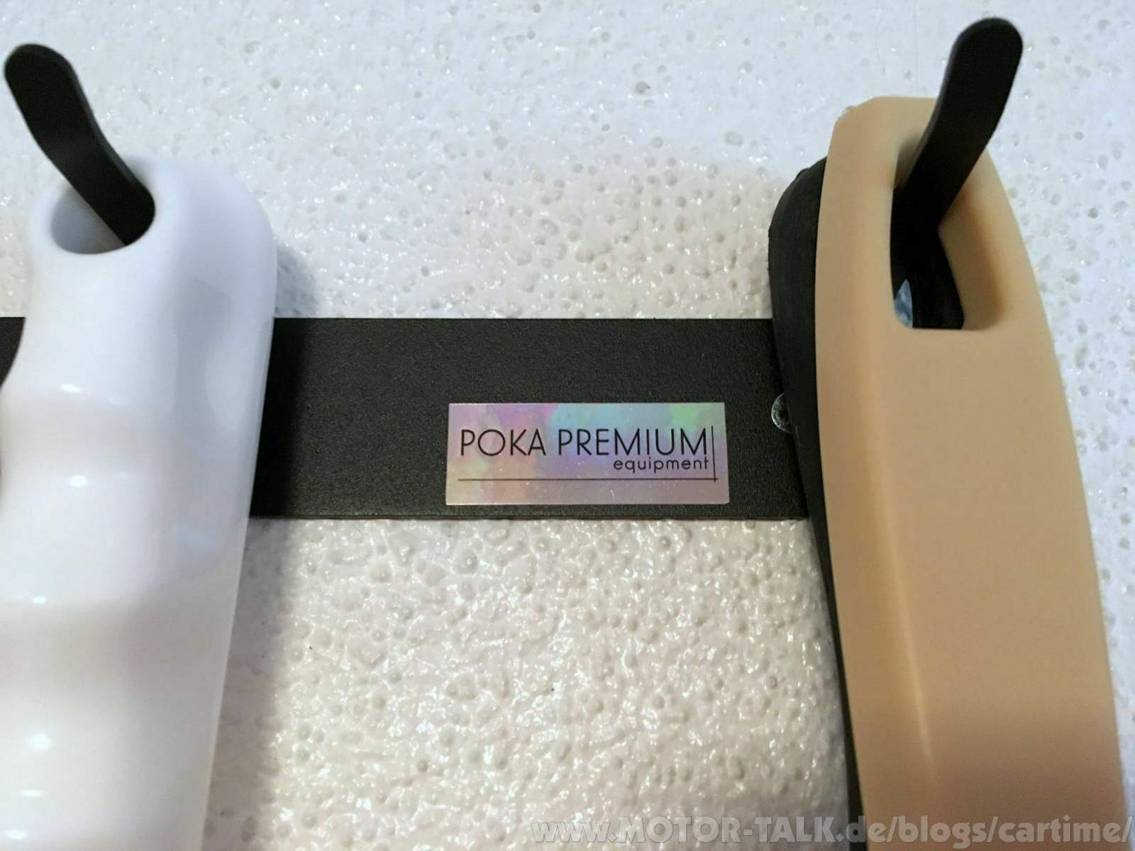 In der Garage habe ich zwei Halterungen aus dem Programm von Poka Premium Equipment. Einmal für Flaschen und Sprühflaschen und einmal für Bürsten. Es gibt wohl noch zahlreiche andere Variationen. Das Material ist immer aus Stahl. Sehr hochwertig und robust gestaltet. Bei meinen beiden Halterungen gibt es jeweils zwei Öffnungen zum Verschrauben. Die Schrauben sind dabei nicht enthalten. Die Anbringung funktionierte aber sehr einfach mit Dübeln. Ich habe mich bei beiden Versionen für die Länge von 40 cm entschieden.