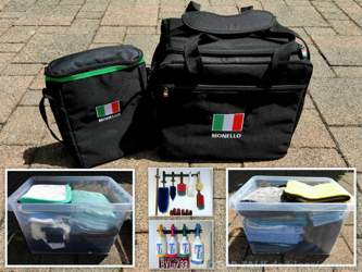 Beginnen wir bei den Autopflegetaschen, die ich mit der letzten Lieferung zusammen mit den, unten noch folgenden, Poka Wandhalterrungen von HQS habe. Nach langem recherchieren im Netz bin ich dort auf die Detailing Bags von Monello aufmerksam geworden. Bin schließlich bei der Cubo XL und der Il Mini hängen geblieben. Diese versprühen durch ihre Aufdrucke etwas italienisches Flair. Obwohl sie ja eigentlich aus Holland stammen?! Doch kommen wir erst mal zu den Fakten.