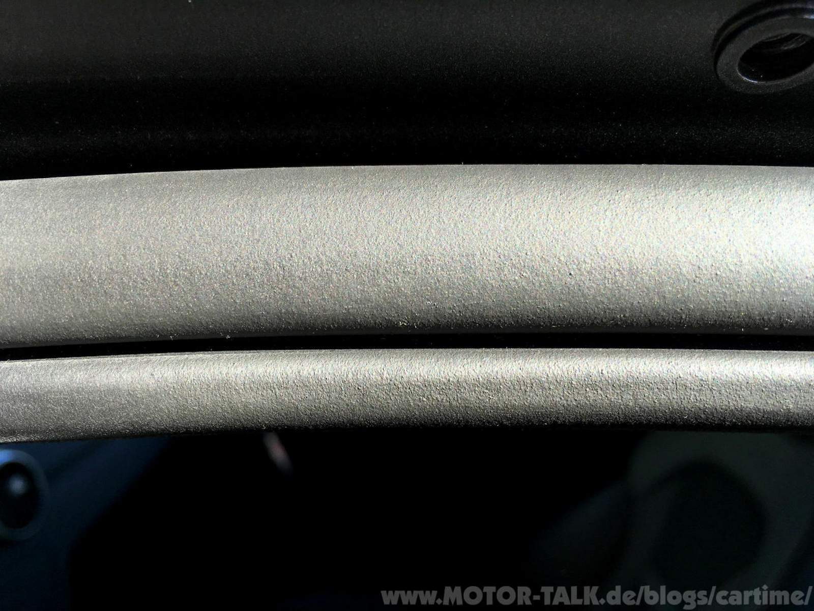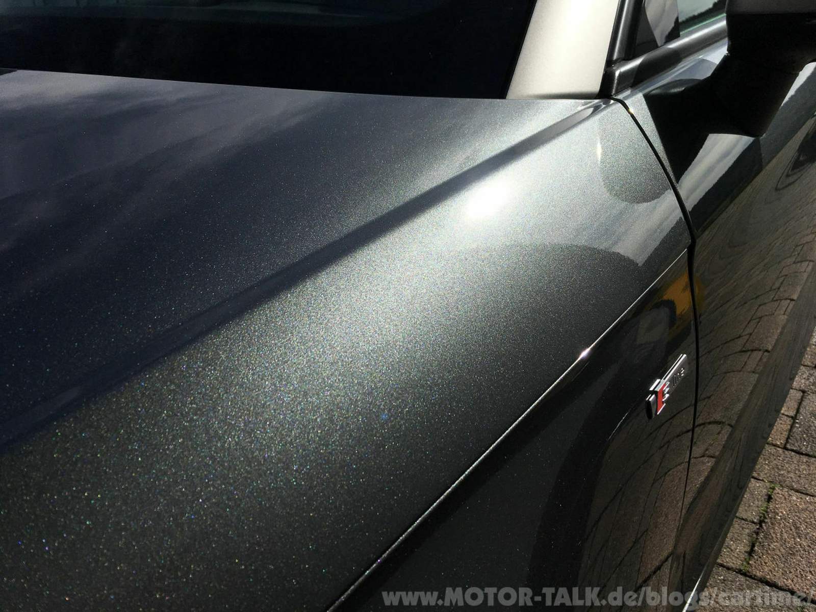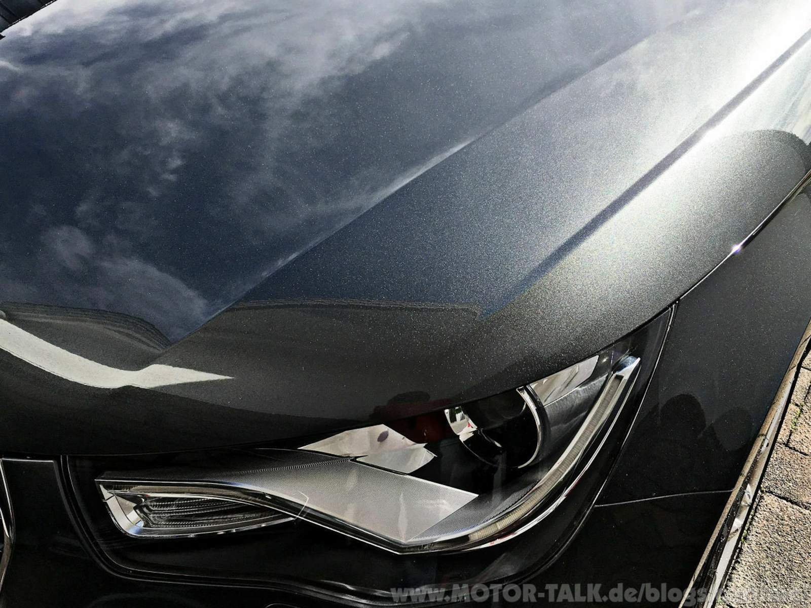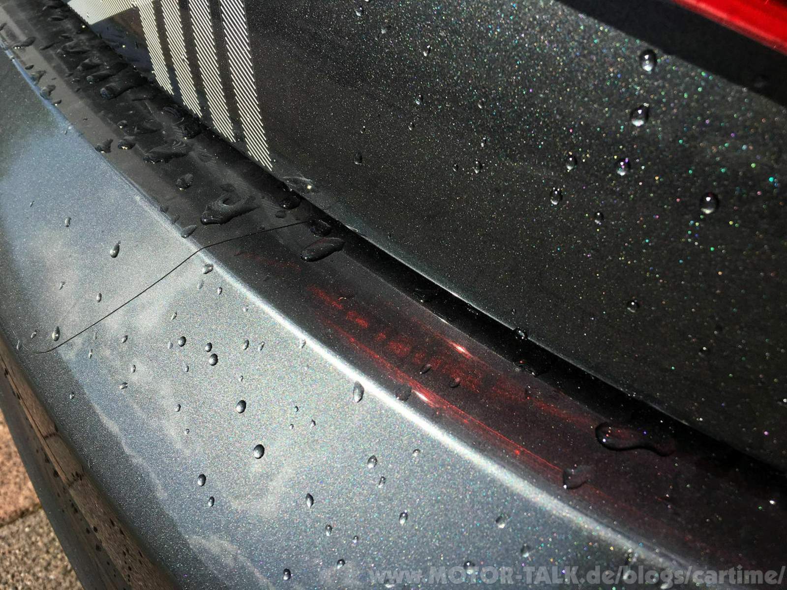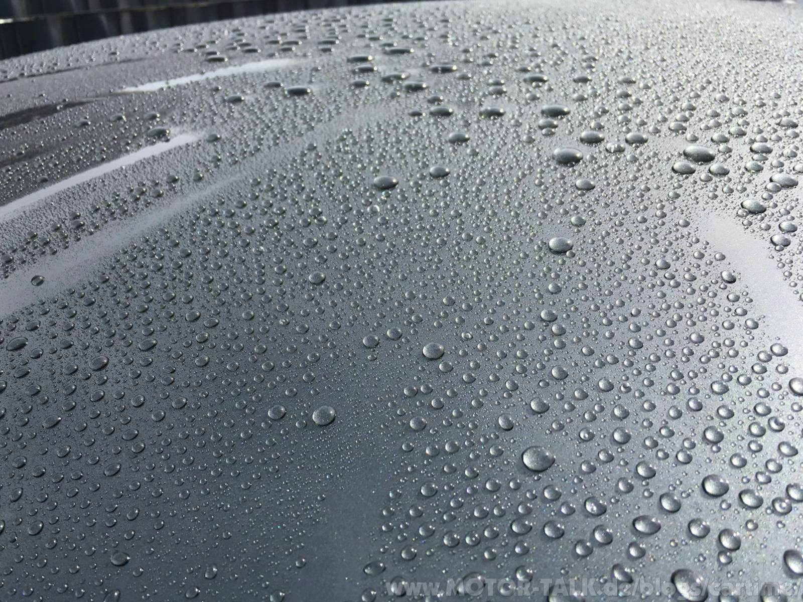 Anfang April habe ich ja drei verschiedene Wachse auf zwei Fahrzeugen aufgetragen und ausprobiert. Das waren das Polishangel Rapidwaxx, das Autosol Hartwachs für matte Folien und das Bilt Hamber Double Speed-Wax. Der Artikel kam dann aber erst Ende April online. Double Speed-Wax und Rapidwaxx haben einen sehr guten Job gemacht. Rund um die Radhäuser begannen die Wachse schon relativ früh auf dem Lack leicht zu schwächeln. Das Rapidwaxx etwas mehr als das Double Speed-Wax. Das war nach den ersten dreieinhalb Monaten. Das zog sich auch so weiter fort. Front- und Heckbereich schwächelten auch an ein paar Stellen, bis zum Abschluss des Tests. Das Dach und ein Großteil der Motorhauben perlen allerdings fast wie am ersten Tag. Einzig allein das Autosol Hartwachs für matte Folien kann ich leider nicht empfehlen, da es nach Regen hellere milchige Flecken auf der matten Oberfläche hinterließ. Lässt sich schwierig auf einem Foto einfangen auf silber matt. Daher gibt’s kein Foto. Vom Schutzfaktor ging es aber in Ordnung. Dieses Folienwachs war aber auch im obigen Bereich des Fahrzeugs (ab den Spiegeln aufwärts). Desweiteren muss ich dazu sagen, dass es sich bei den Testfahrzeugen um Garagenfahrzeuge handelt. Die standen also nicht den ganzen Tag in der brütenden Hitze herum. Hier mal ein paar Bilder des Beading’s im sauberen Zustand.