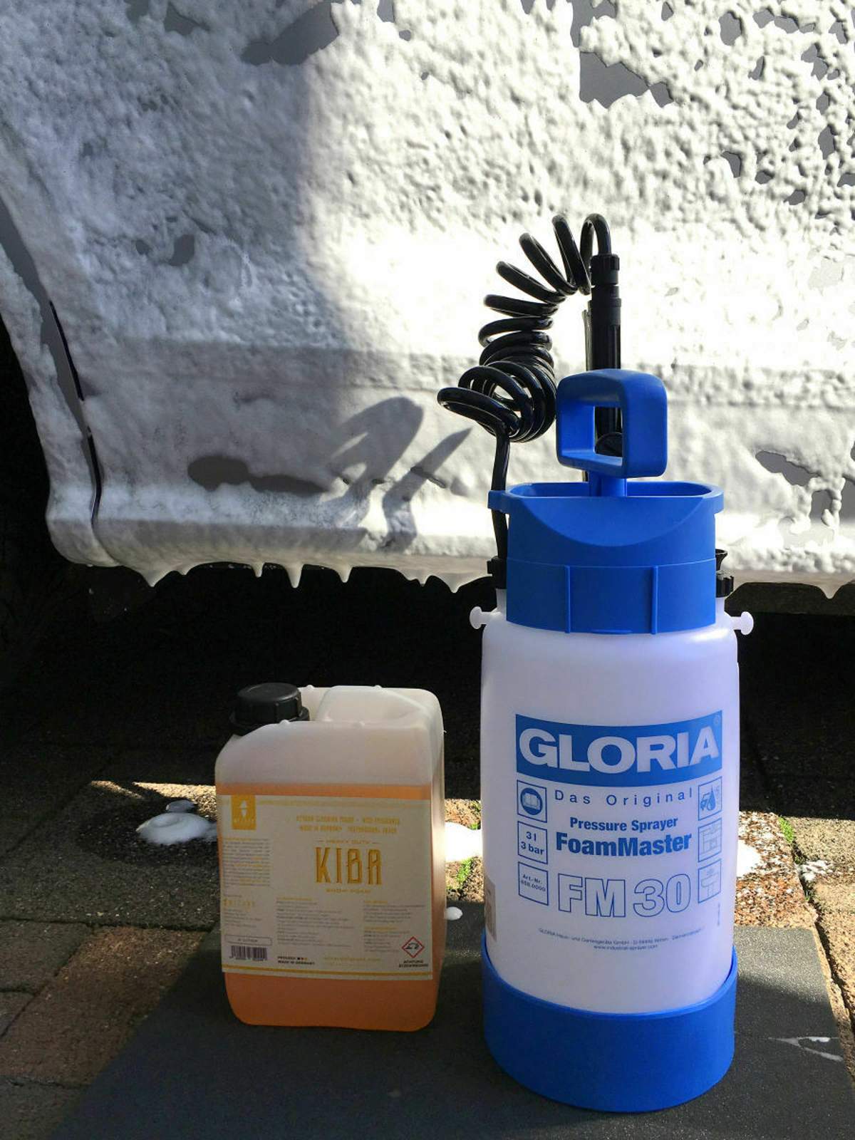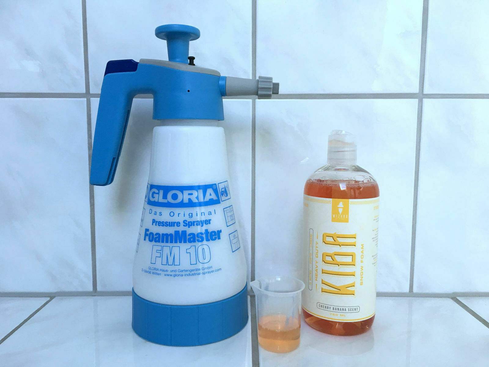 Die neue Gloria FM 30 passt auch mit dem Wizard of Gloss Kiba Snow Foam sehr gut zusammen. Der rote Filter ist mein Favorit, wobei der blaue auch nicht viel schlechter ist. Lediglich der schwarze macht mir persönlich einen zu dicken Schaum, der wie man oben sieht zu schnell abläuft! Der Geruch ist immernoch der Hammer, da kann das hauseigene Gloria Snow-Foam Shampoo nicht mithalten. Auch die Reinigungsleistung ist nach wie vor super.