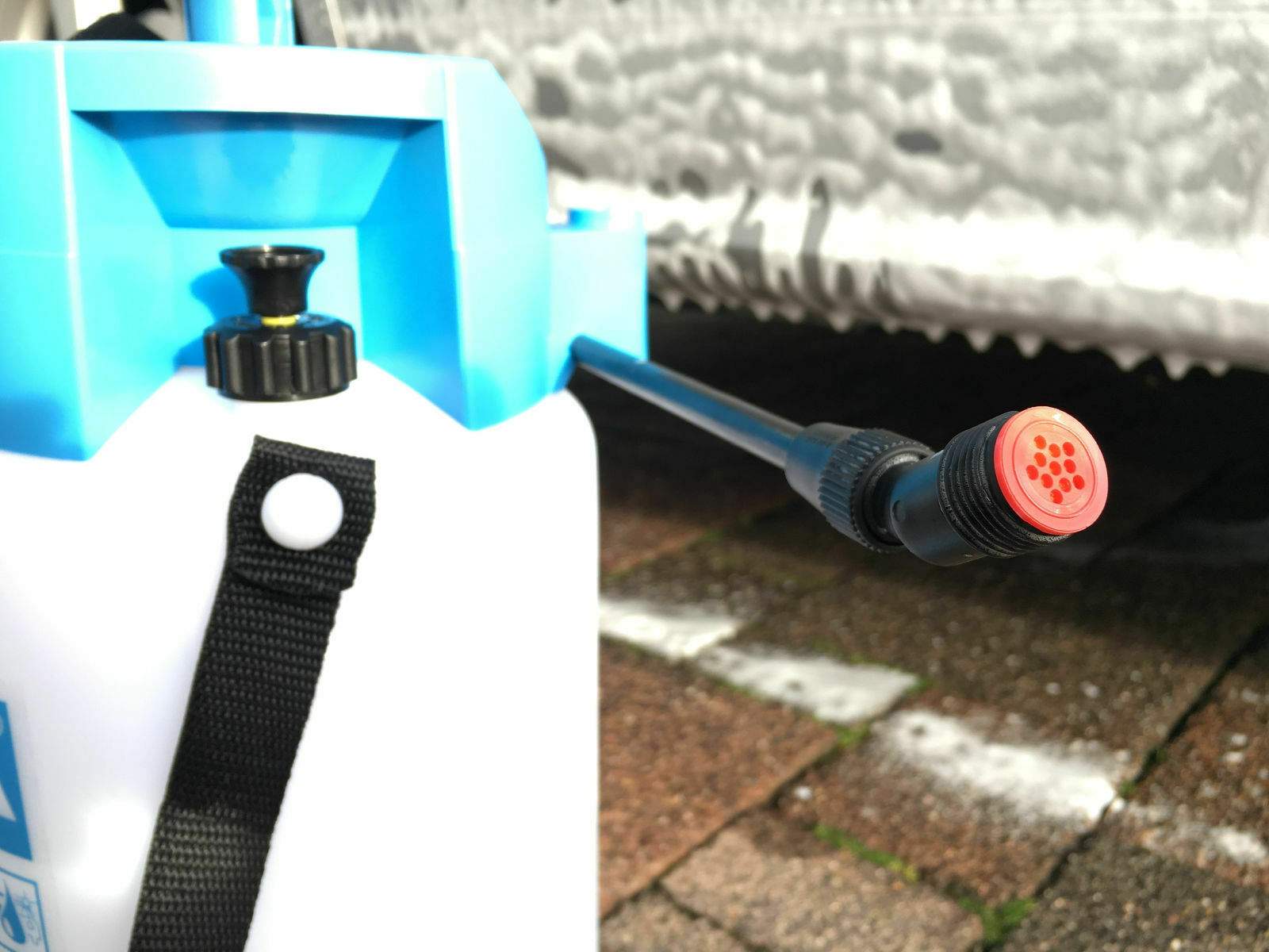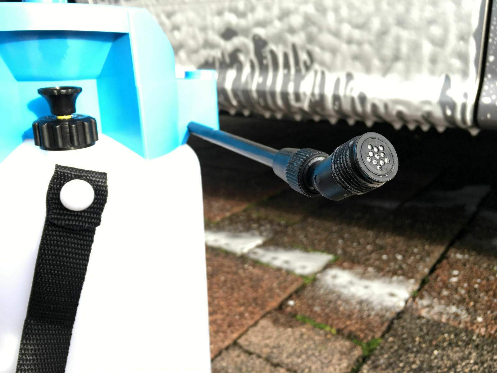 Neben dem besseren Füllvolumen ist auch die längere Sprühlanze (mit 1,25m langem Schlauch) ein sehr tolles Feature. So kommt man auch auf Fahrzeugdächer oder in enge Radkästen hinein. Teste ich also nun mal die verschiedenen Filter der FM 30 mit dem WoG Kiba durch: