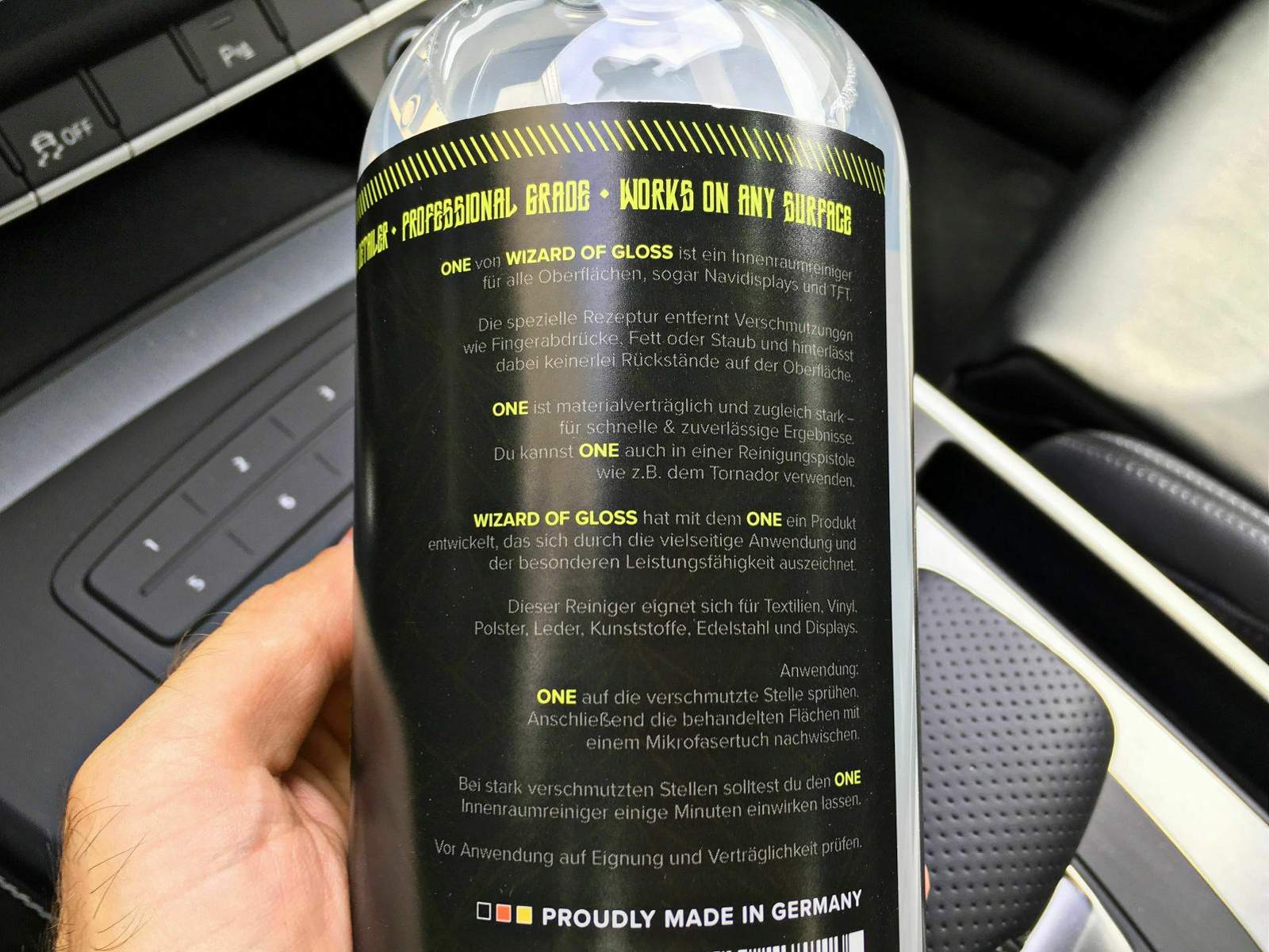 Auch im Innenraum muss natürich etwas gemacht werden. Schon etwas länger erhältlich und bei mir neu mit dabei in diesem Artikel ist der One. Es handelt sich um um einen Innenraumreiniger, den man im Innenraum auf so ziemlich allen Oberflächen anwenden kann. Das wären: