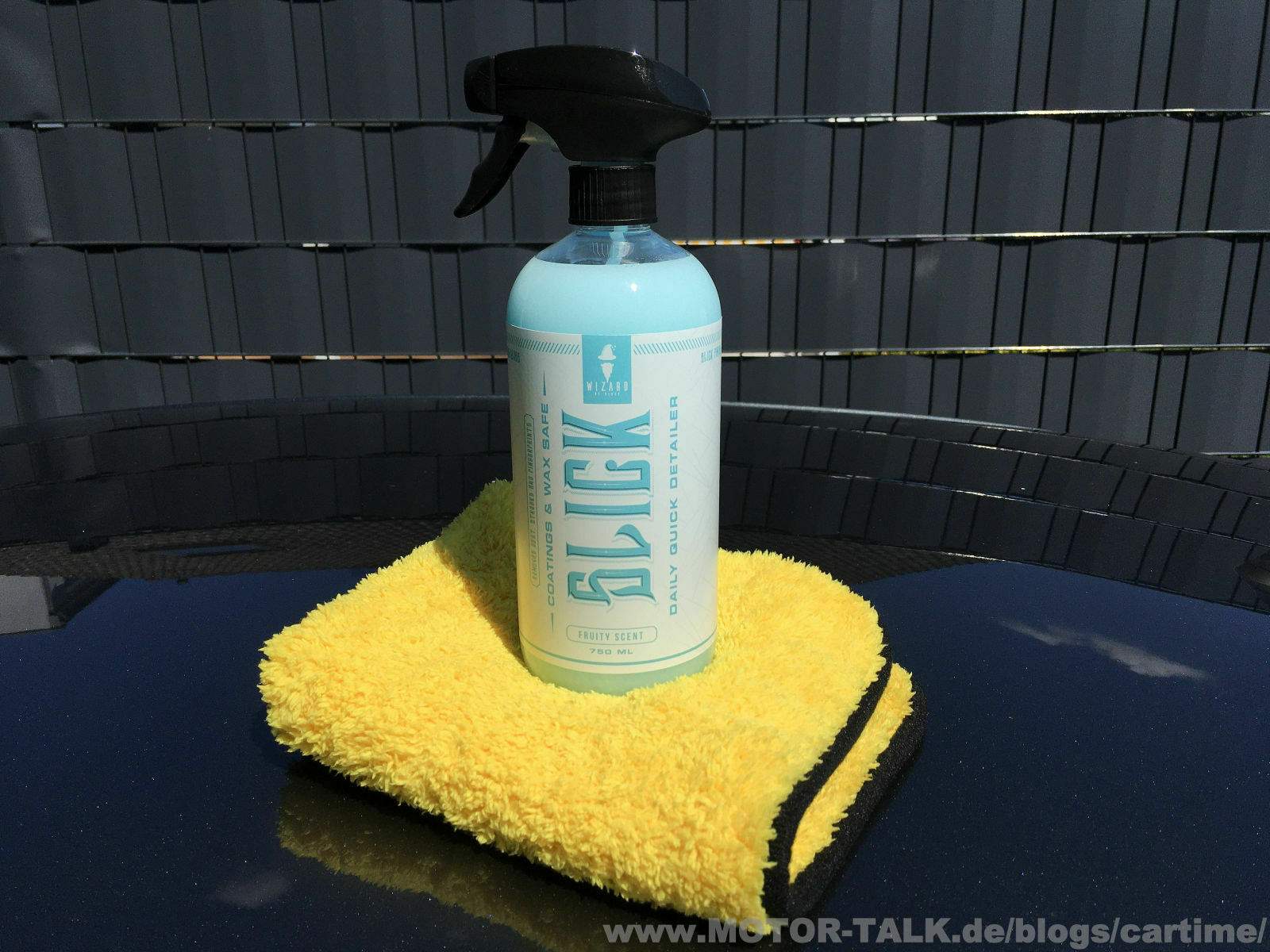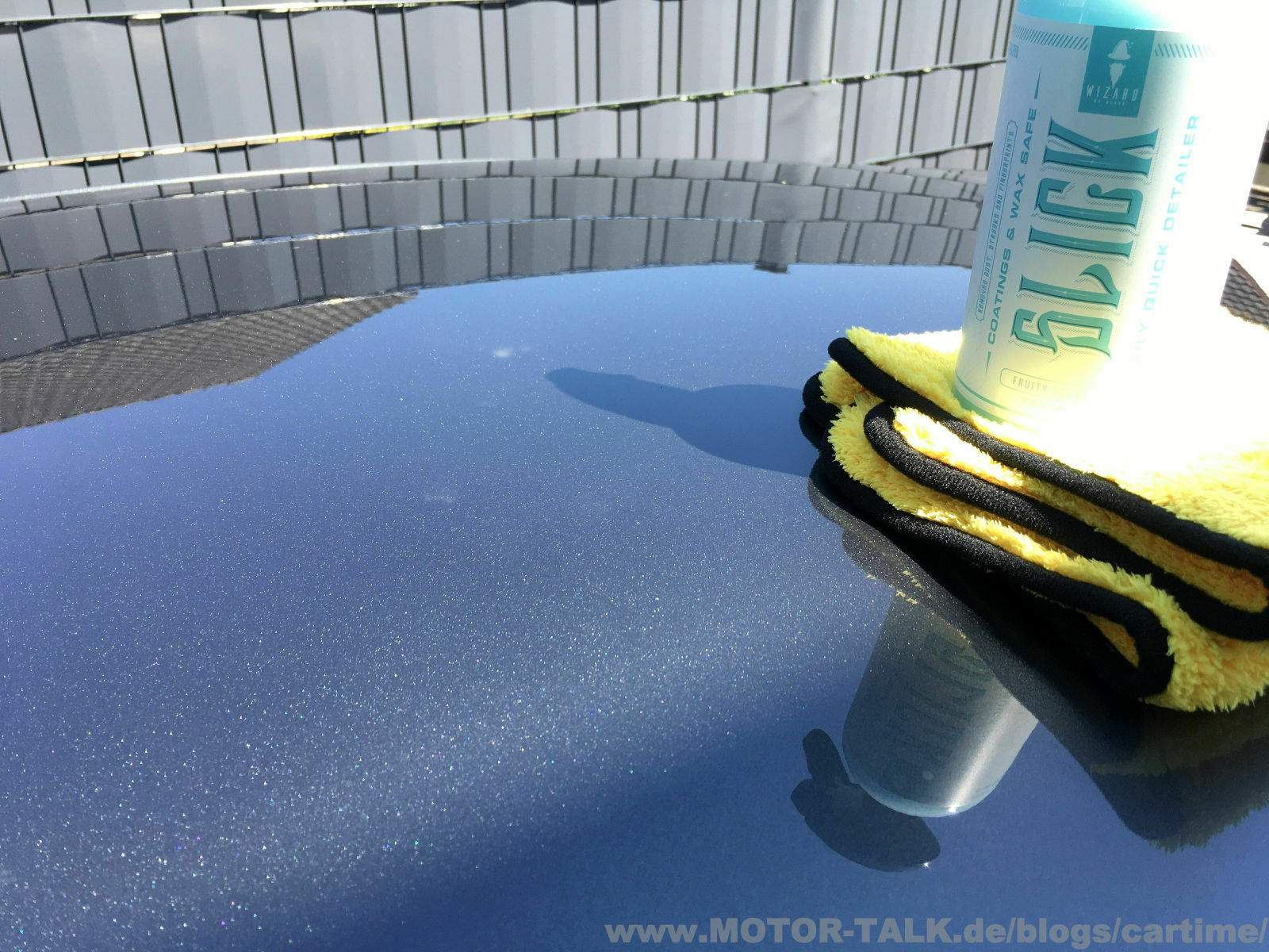 Für nach der Wäsche gibt es etwas neues bei den Wizards. Einen tollen Detailer auf Siliciumbasis für die schnelle Pflege. Die Anwendung ist denkbar einfach und ohne Schlieren machbar. Mit dem hauseigenen Detail Hero Detailing Tuch klappt das super. Es braucht dafür nur wenige Minuten!