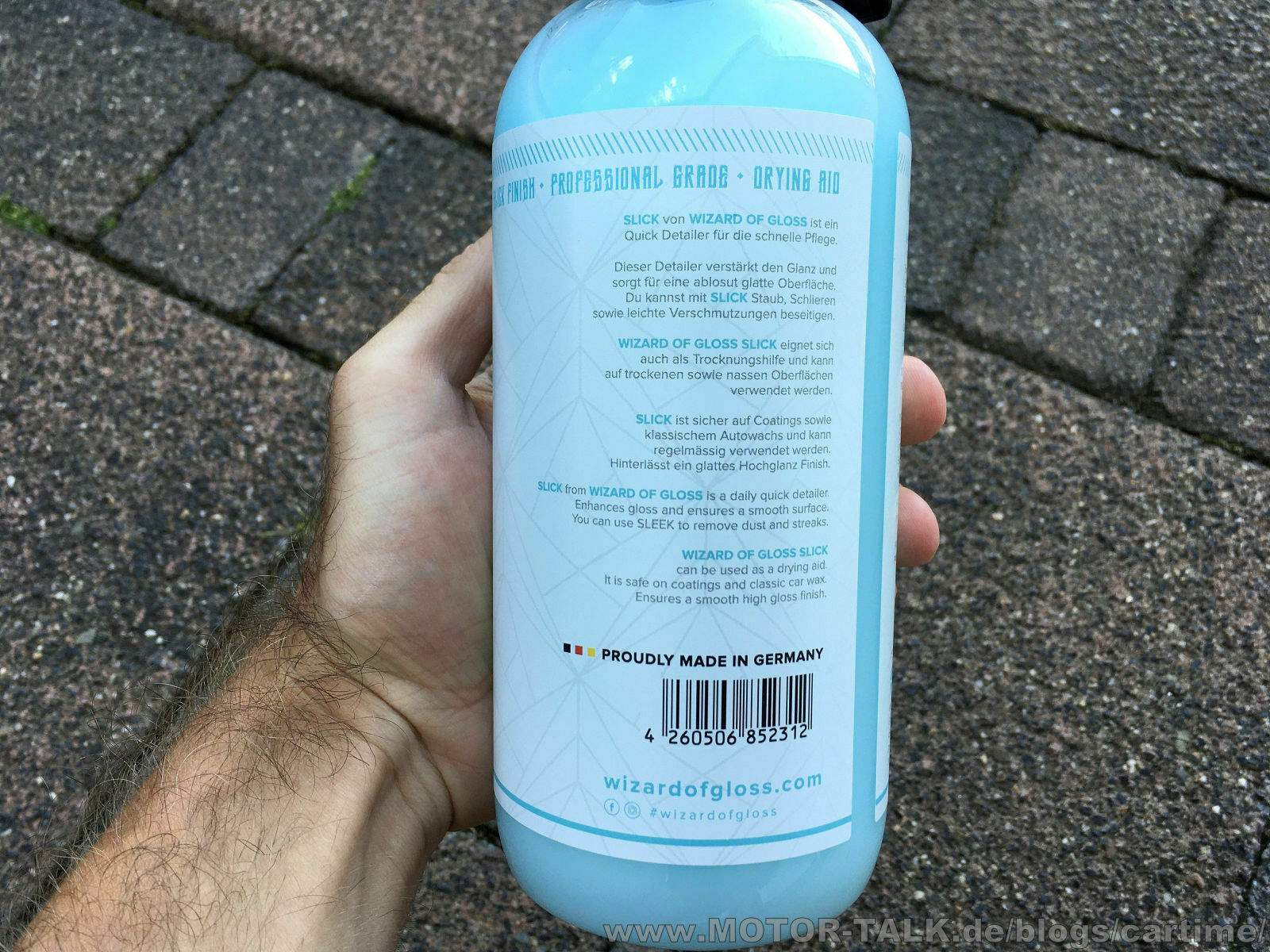 Der Slick bringt nach dem Waschen nochmal das letzte Fünkchen Glanz raus und toppt das Ergebnis. Ein weiterer Pluspunkt ist es, dass die behandelten Oberflächen richtig schön glatt werden. In der Luft liegt kurzzeitig ein toller Duft ähnlich wie von fruchtigem Kaugummi.
