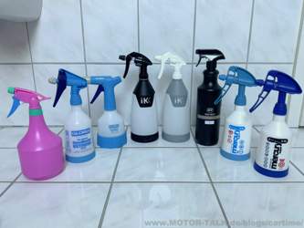 „Discounter“ Sprühflasche angetreten als 1L Gloria CleanMaster EXTREME EX05 angetreten als 0,5L Gloria CleanMaster CM05 angetreten als 0,5L IK Multi Tr 1 angetreten als 1L und als Mini 0,6L 360 Grad IK HC Tr 1 angetreten als 1L K2 PRO Mixer angetreten als 1L Kwazar Mercury Super Pro+ 360 angetreten als 0,5L Kwazar Mercury Super HD alka line angetreten als 0,5L