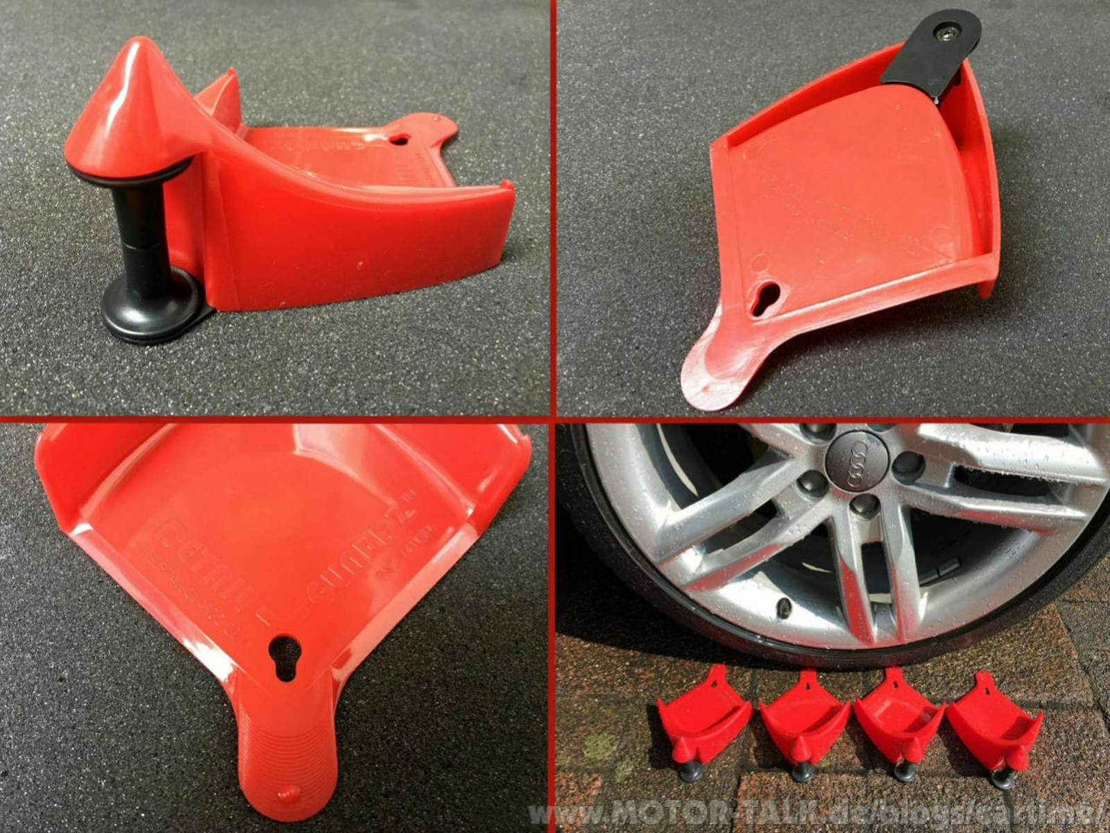 Da dachte sich ein Autopfleger in Kanada, das geht so nicht. Detail Guardz oder Tire Guardz sind eine simple, aber sehr hilfreiche Erfindung für die Autowäsche. Eine Kunststoff Konstruktion mit einer flexiblen Rolle. Bei minimalster Bewegung kommt die Rolle in Bewegung. Die Konstruktion macht dabei einen guten stabilen Eindruck.