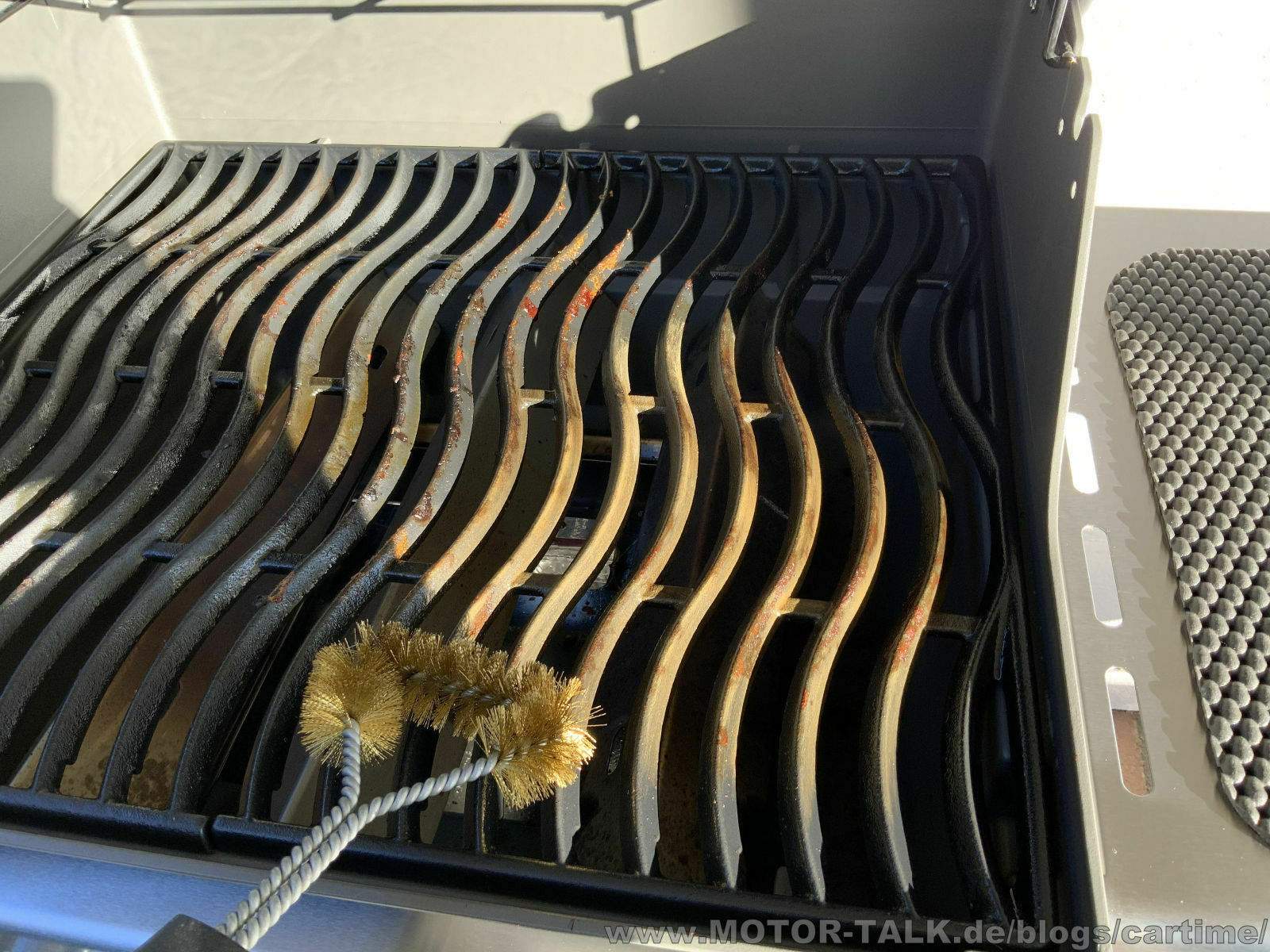 Bedeutet: Grobe Verschmutzungen sollte man natürlich beseitigen, genau wie der Zustand der Fettwanne und -auffangschale stets im Auge zu behalten ist, um einen Fettbrand nahezu ausschließen zu können. Aber ansonsten muss und sollte man nicht versuchen, den Grill durch stundenlange Putzaktionen in den Zustand zu versetzen. Das wird eh nicht gelingen und ist auch nicht nötig.