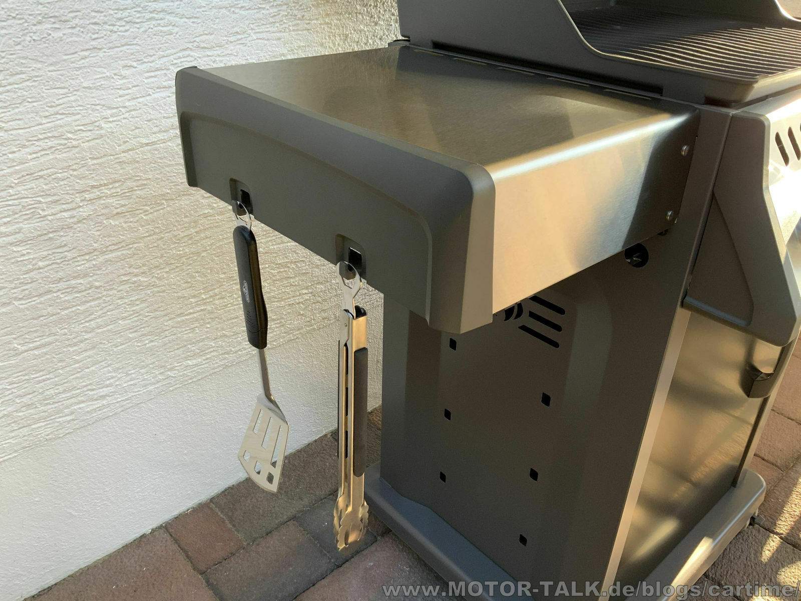 Was ich jetzt auch schon gesehen hab: Broil-King bietet auch eine Platte für die Sizzle-Zone im Seitentisch an. Gar nicht so blöd die Idee. Aber die hast du auch nicht, richtig?