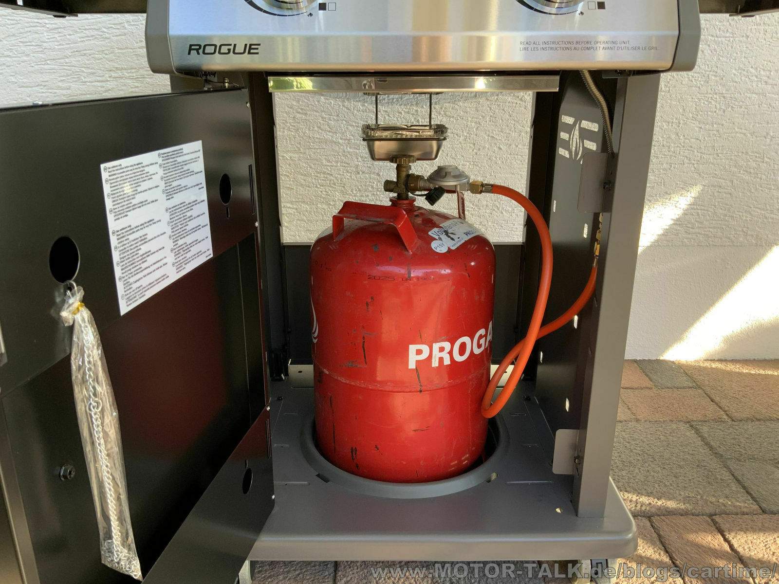 Unser neues Sportgerät, wie man ja in Fachkreisen zu sagen scheint, macht auch Zuhause einen tollen Eindruck. Nappi @ home. Bevor es losgehen konnte, kauften wir noch eine 11Kg Propangasflasche im Baumarkt. Diese konnte man gerade so im Grillschrank unterbringen. Aber passte.