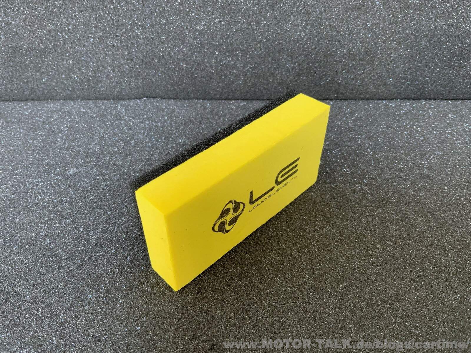 Um diesen Applikator wickelt ihr immer eins der Suede Tücher. Ihr nehmt pro Felge eins. 4 sind enthalten. Dann schüttelt ihr gut durch und macht das kleine Fläschchen mit der Versiegelung auf. Das ist etwas tricky, ihr müsst den Verschluss drücken und drehen. Ihr gebt ungefähr 5-6 kleine Tröpfchen auf das Tuch. Das ist nicht exakt genau zum dosieren. Daher wenn paar mehr oder weniger, nicht weiter schlimm. Nur viel mehr wären schlecht, dann schmiert es und ist schwieriger beim Abnehmen und Auspolieren.