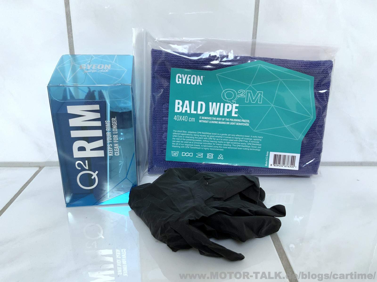 Das Gyeon Q² Rim scheint eine gute Felgenversiegelungen zu sein, die guten Erfahrungen im Netz scheinen zu stimmen. Man muss halt einiges beachten. Ich habe es, als Anfänger auf dem Gebiet, auch hinbekommen. Man benötigt nur genügend Zeit und Geduld. Man hat nach 4 Anwendungen auf 4 Felgen noch mehr als genug Produkt in der Flasche. Es sind 4 Suede Tücher enthalten, das heißt für weitere Felgen benötigt man entweder neue oder man nimmt diese kleinen weißen und runden Wattepads aus dem Drogeriemarkt.