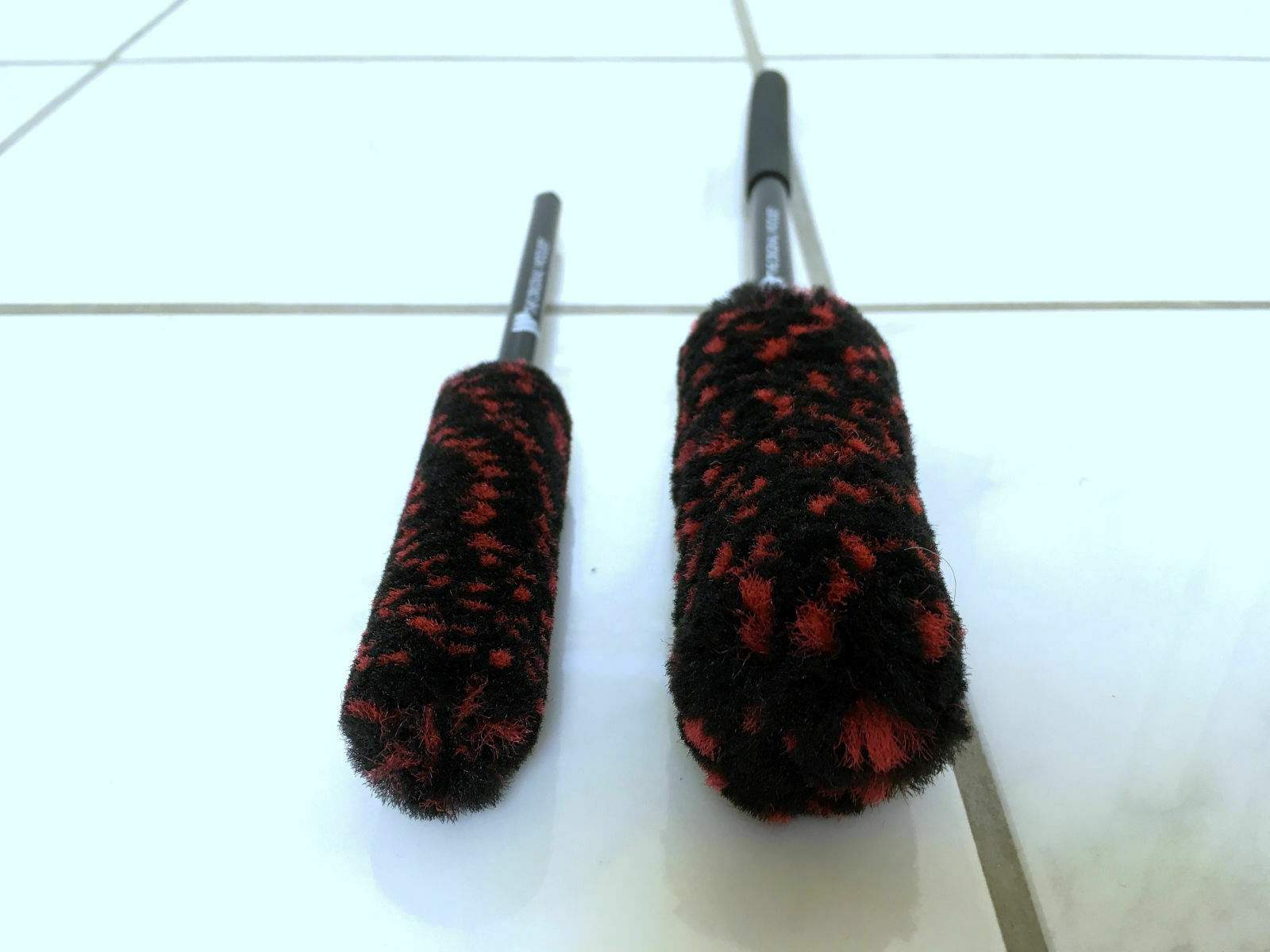 Die Mikrofaser Materialien von Gyeon und Microfiber Madness sind sehr weich. Die Incredibrush ist aber mit Abstand noch weicher, flauschiger und voller an Fasern. Dazu auch um einiges länger! Das ist je nach dem, ein klarer Vorteil (kommt auf die Felge an). Meine Q²M WheelBrush ist schon nicht mehr so weiß wie am Anfang. Habe sie schon länger in Gebrauch. Ein weiter Vorteil für Microfiber Madness ist es, dass man den Mikrofaserbezug abnehmen und sogar waschen kann! Ganz gewohnt wie auch jeden Waschhandschuh. Die Wheel Woolies sind nicht ganz so weich wie die oberen beiden, aber immernoch sehr schonend für die Felgen. Das synthetische Mikrofaserwoll-Material ist sehr dicht, qualitativ hochwertig und weich. Jedoch würde ich Bereiche die aus sehr empfindlichem hochglanzschwarzem Kunststoff oder Unilack sind auslassen. Das könnte minimale Swirls geben. Das ist aber bei den EZ-Detail Modellen ebenso der Fall. Ansonsten geht alles mit den Wheel Woolies und gibt auch keine Probleme. Man kann sie variabel einsetzen. Das bedeutet nicht nur bei Felgen, sondern auch an anderen Bereichen. Tipp: Was die saugkraft angeht, so sollte man die Wheel Woolies ein zwei mal vor dem wieder neuen Gebrauch im Wasser kneten. So saugen sie sich mit Wasser voll.