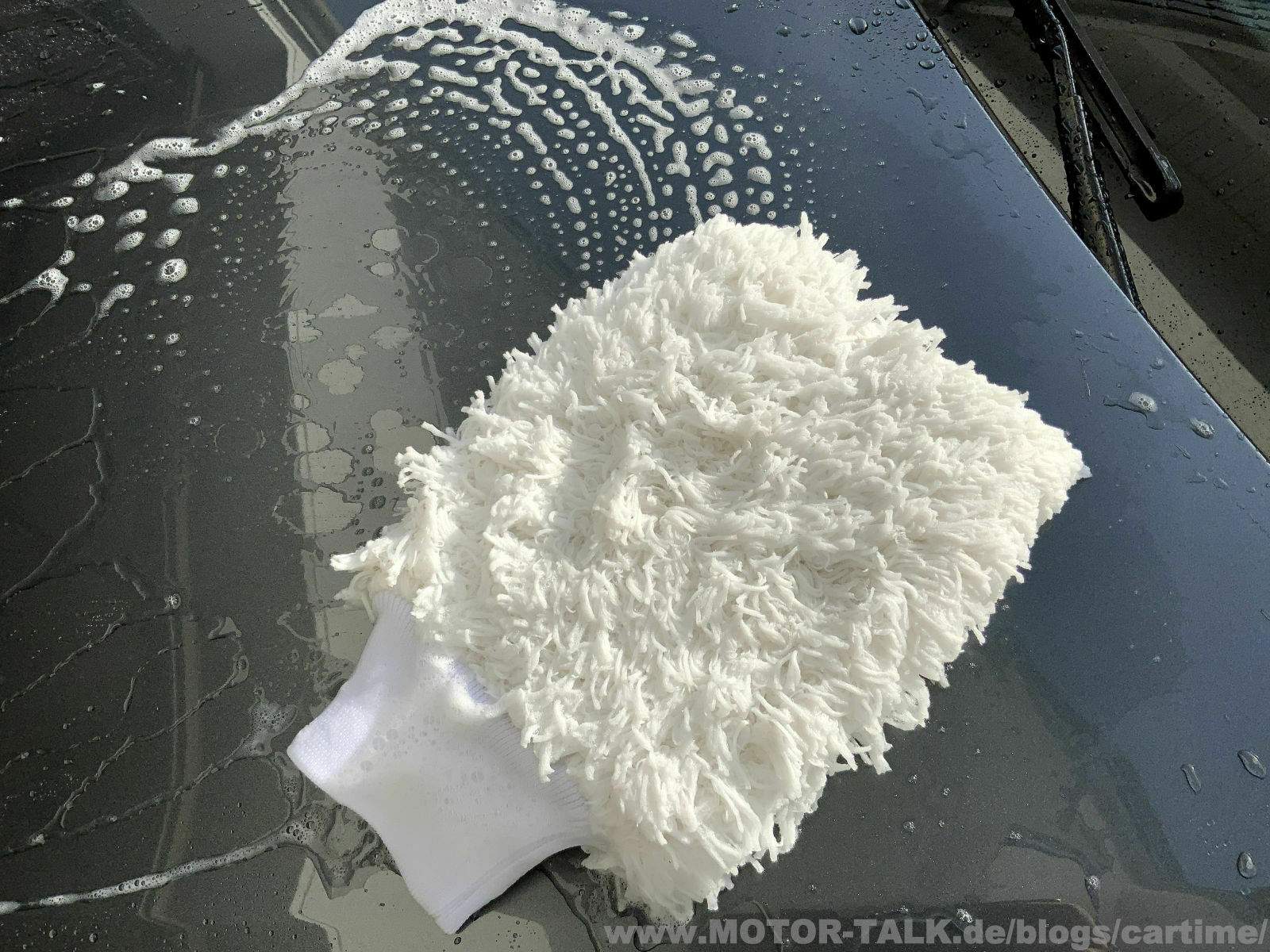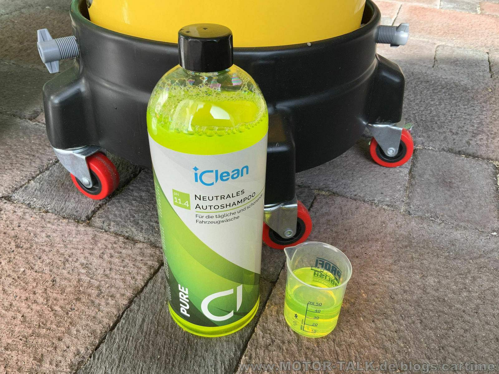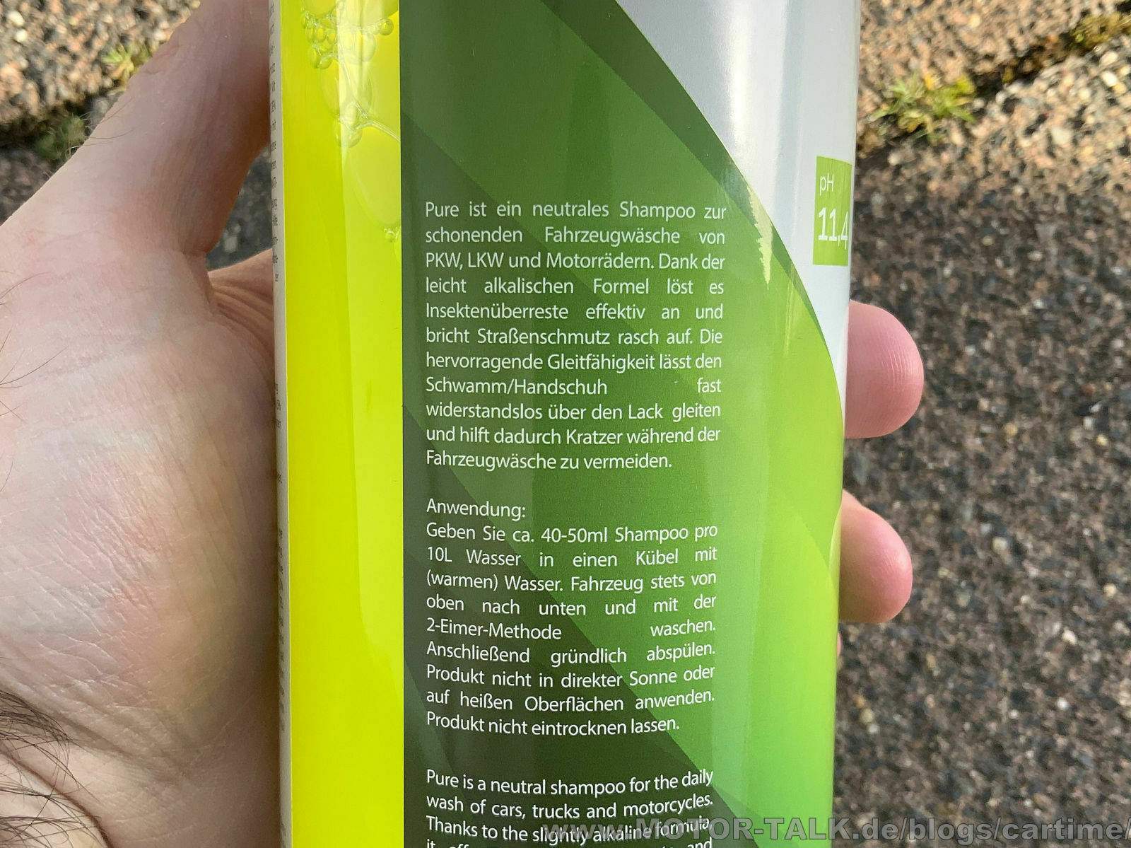 Das Pure ist ein schonendes und pH-neutrales Autoshampoo für die regelmäßige Handwäsche. Es ist natürlich auch sicher auf Wachs und Versiegelungen. Ich gebe ca. 50-55 ml in meinen großen 18 L Wascheimer, wo es auch schon gut aufschäumt. Man kann auch warmes Wasser nehmen. Das Gleitverhalten mit dem Waschhandschuh ist auch gut. Ein solides Shampoo. Der Geruch ist eher dezent. Nach der Handwäsche alle Schaumreste gut abspülen.
