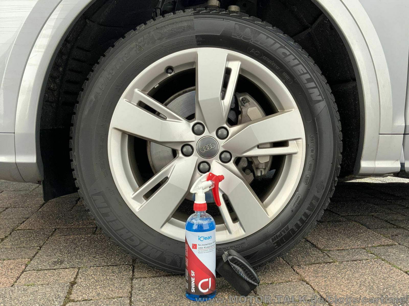 Das Shine in der silikonfreien Variante kümmert sich um die Pflege von Kunststoff und Reifenflanken im Außenbereich. Silikonfrei ist aus dem Grunde gut, da diese Version keine braunen Flecken auf z.B. den Reifen hinterlässt. Das kann je nachdem bei verschiedenen Reifentypen schon mal vorkommen. Vom Glanzgrad ist es seidenmatt, es glänzt nicht so stark. Bei nicht mehr so ansehnlichen Reifen kommt das ursprüngliche schwarz wieder zurück.