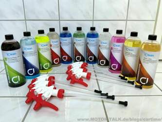 Die iClean Produkte haben alle samt einen sehr guten Eindruck hinterlassen. Nochmal speziell herausgestochen sind meiner Meinung nach der Interior Star, der Innergy und der Reactive One. Der Innenraumreiniger, weil er wirklich sehr gut reinigte. Die Innenraumpflege, weil sie nochmal dezenter war als Koch Chemie RefreshCockpitCare. Für die jenigen, die nahezu keine Abdunklung wünschen. Und dazu auch für Gummimatten geeignet ist. Der Felgenreiniger Reative One, weil er kaum stinkt und eine sehr gute Reinigungsarbeit verrichtete. Die Ergebnisse der anderen Produkte konnten sich aber auch sehen lassen. Das Snow Foam(s), z.B. für die jenigen, die es bunt mögen. Durch die Canyon Sprühköpfe kann man die Flüssigkeiten sehr gut vernebeln. Durch die 750 ml Füllmengen hat man auch immer noch etwas mehr, als bei herkömmlichen 500 ml Produkten. |
