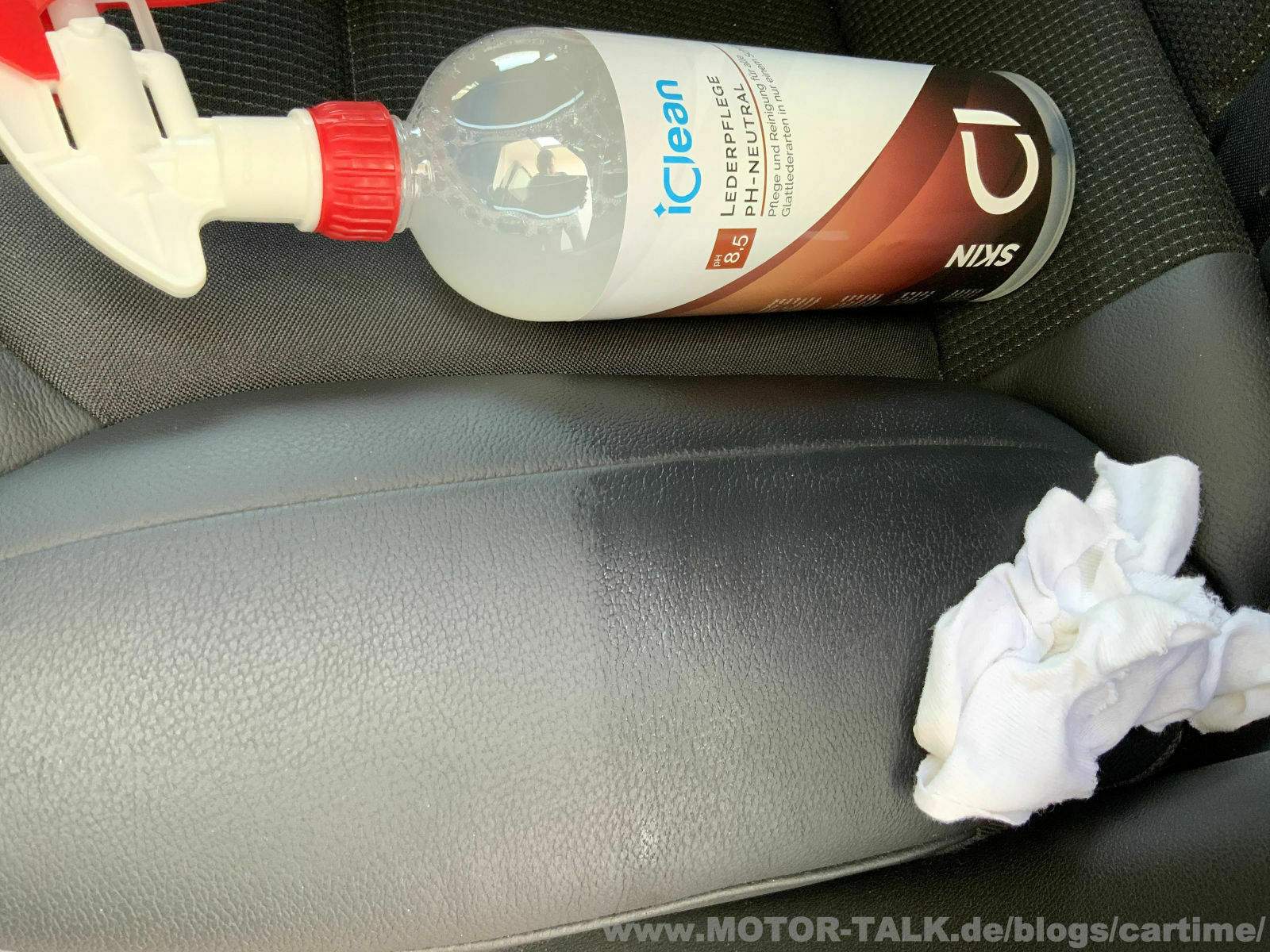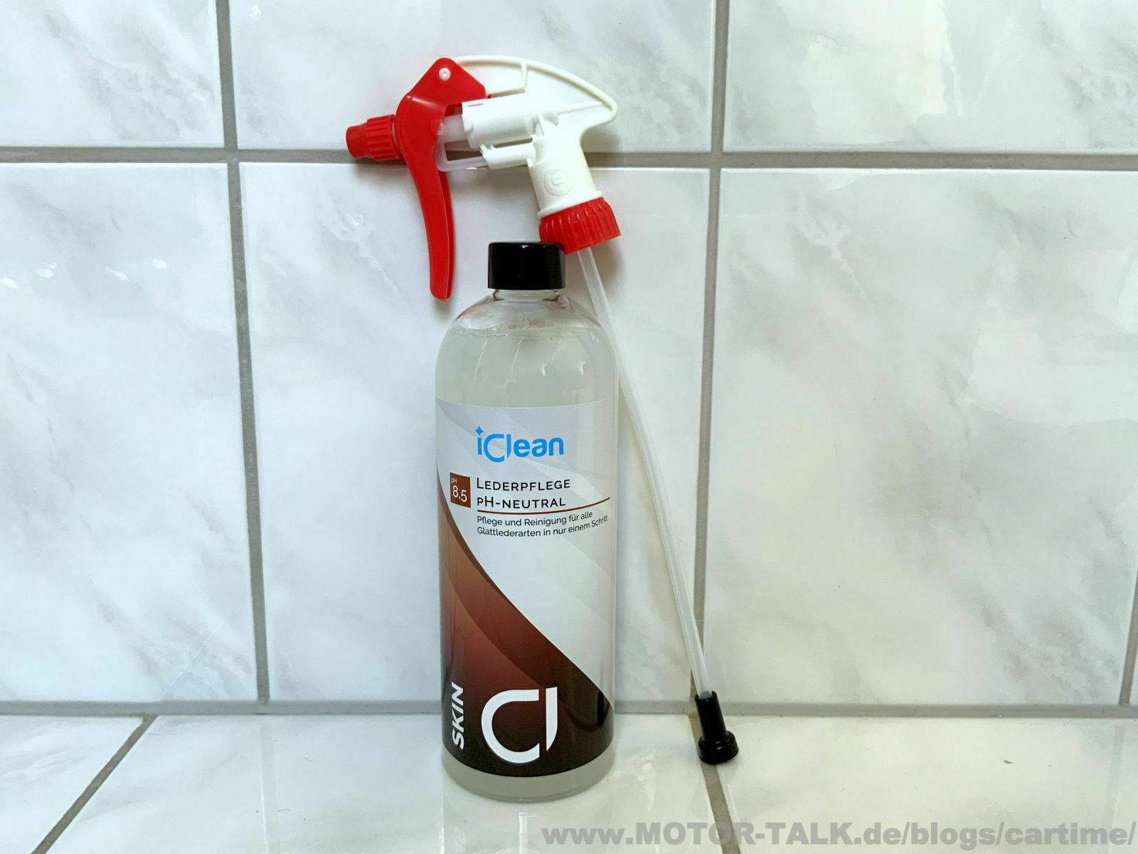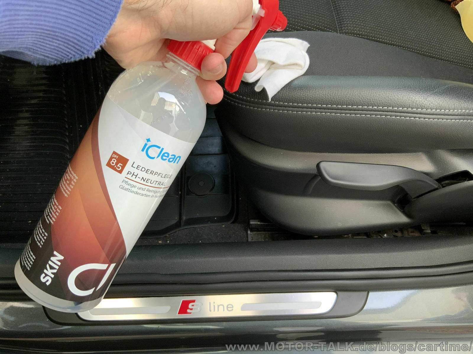Die Lederpflege bei iClean nennt sich Skin. Sie pflegt nicht nur, sondern reinigt auch zugleich etwas. Bei nicht zu extremer Verschmutzung am besten mit einem sauberen Baumwolltuch auftragen.