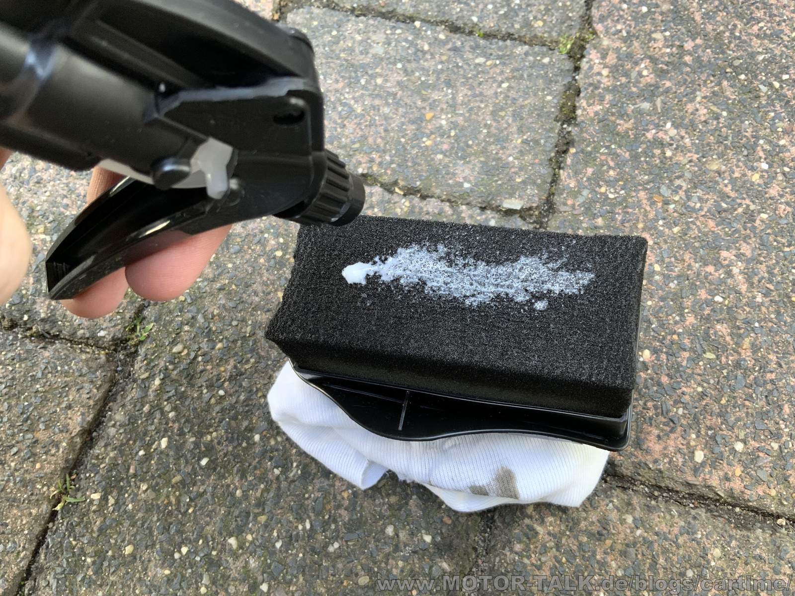 Beim Aufsprühen des Tire & Protect auf das Pad kommt einem ein Kakao ähnlicher Duft entgegen. Für Duft Fetischisten und Schoko Fans was feines. Muss natürlich nicht, vielen ist es auch egal. Im Vergleich zu vielen anderen Tire Dressings ist das Produkt flüssig und nicht gelartig. Ist Geschmacksache. Komme mit beidem gut klar. Lässt sich auch hier gut verteilen. Evtl. zieht es sogar schneller ein als ein gelartiges Produkt.
