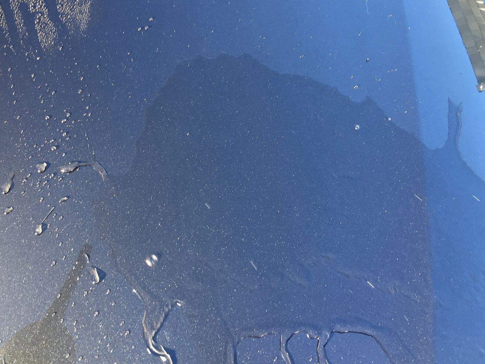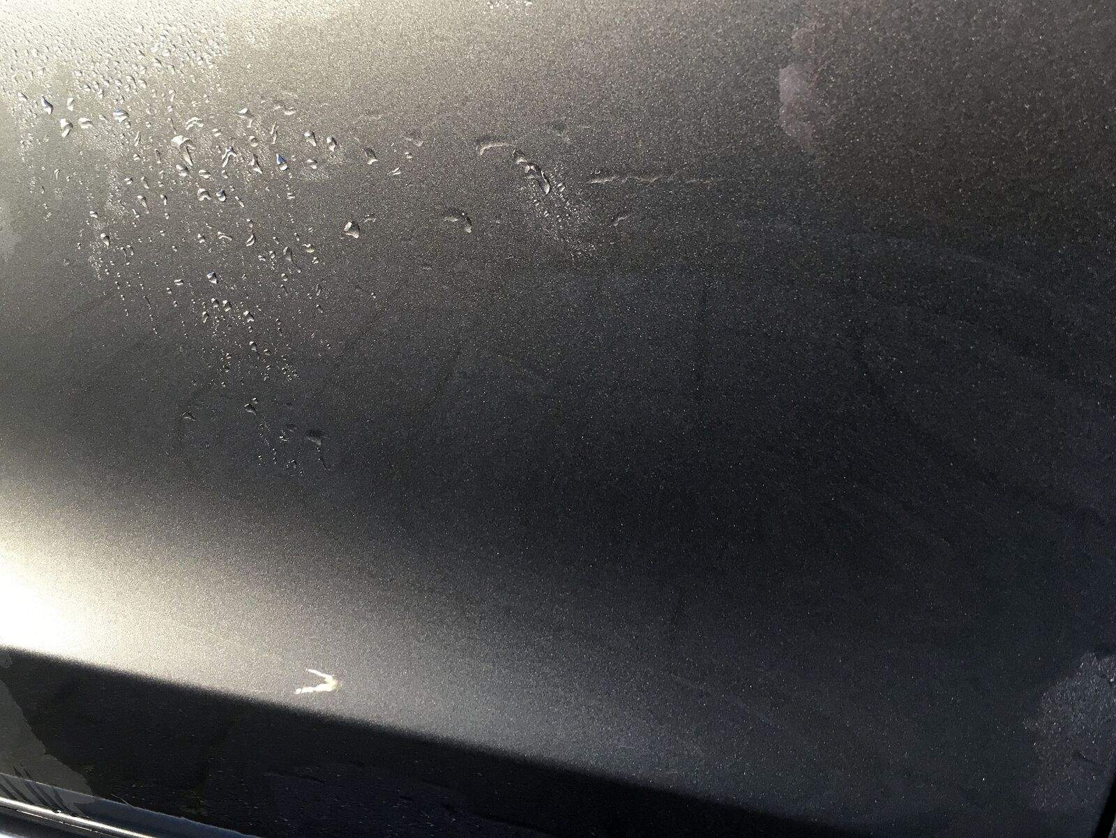 Ich schweife mal kurz etwas ab vom Detailer und zwar gibt es beim Abperlverhalten auch Unterschiede zwischen verschmutztem Lack und sauberem Lack. Ein komplett verschmutzter Lack oder einer der nur per HDR Vorwäsche gereinigt wurde, kann durchaus nicht mehr so toll perlen wie ein komplett sauberer! Heißt also nicht immer, der Lackschutz ist weg, wenn es nicht mehr perlt. Er kann sich auch einfach etwas versteckt haben. Folgendes Bild stammt von der Motorhaube.
