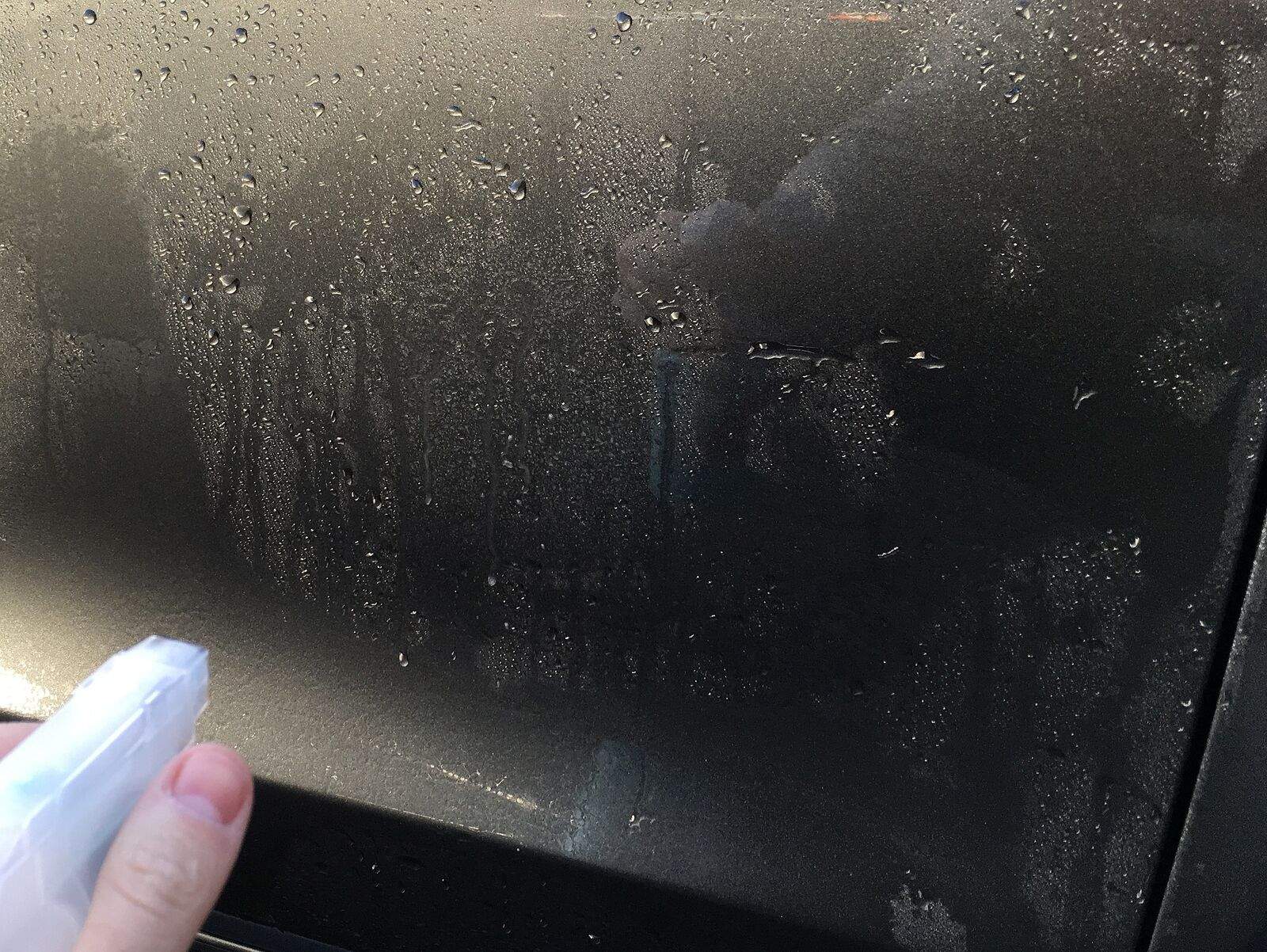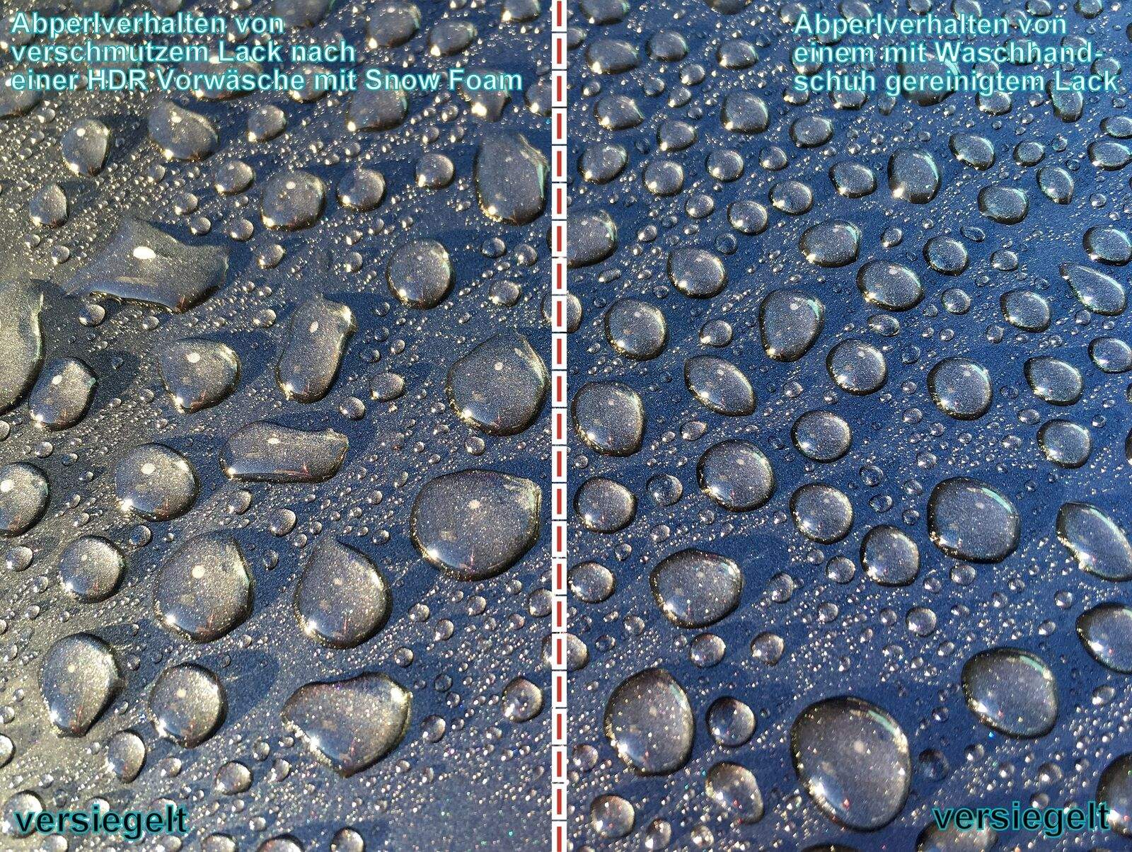 Vergleich Abperlverhalten - verschmutzer Lack vs. sauberer Lack