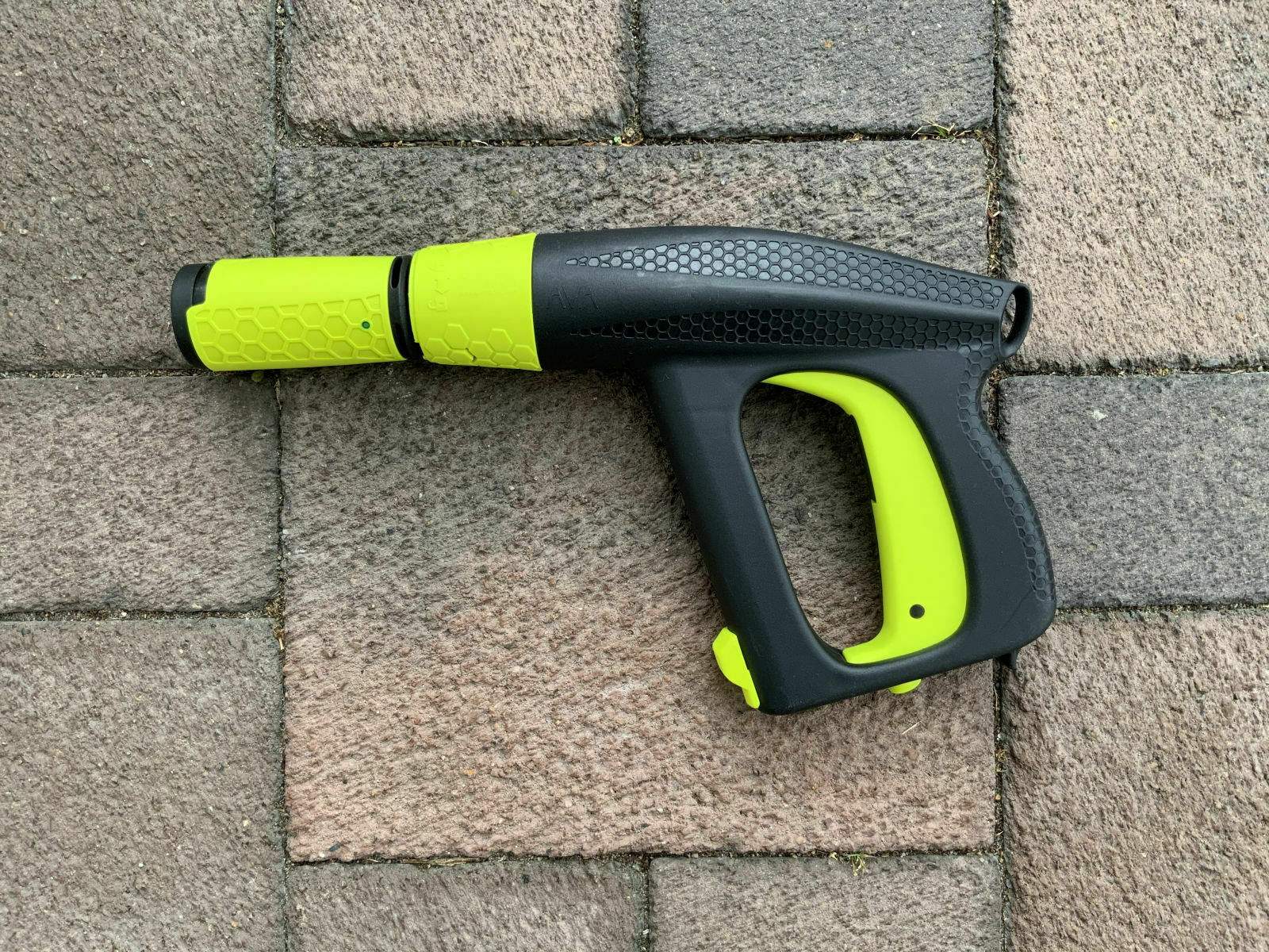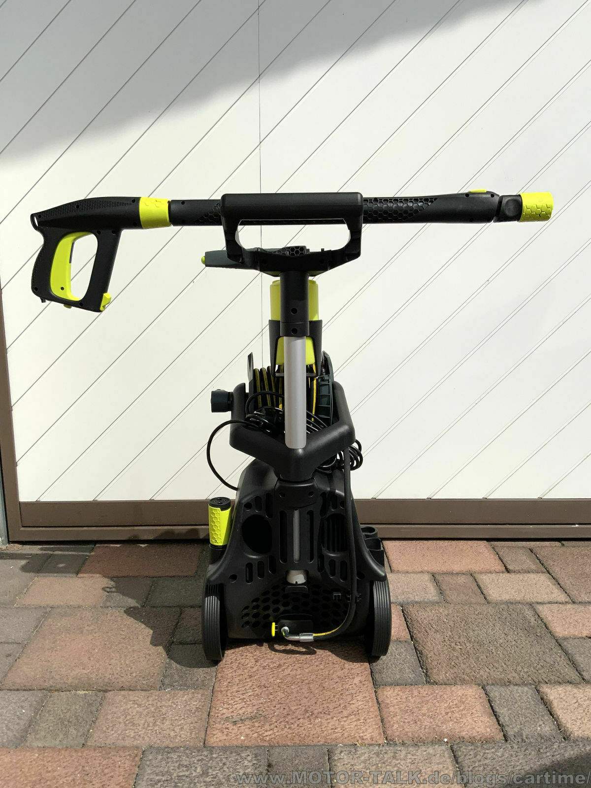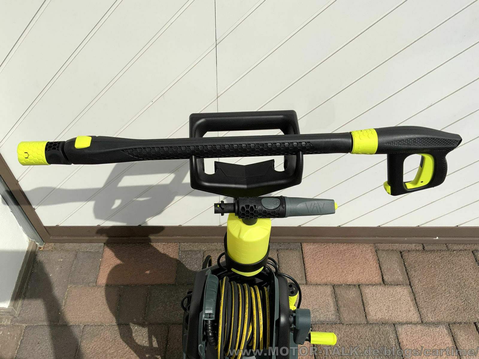 Der Hochdruckreiniger hat einen stabilen Handgriff, der sowohl zum Ziehen, als auch zum Tragen genutzt werden kann. Darüber hinaus kann er auch als Ablage der langen Lanzen benutzt werden. Hat sich auch als praktisch herausgestellt beim Wechseln von Schaumkanone zur Variodüse.