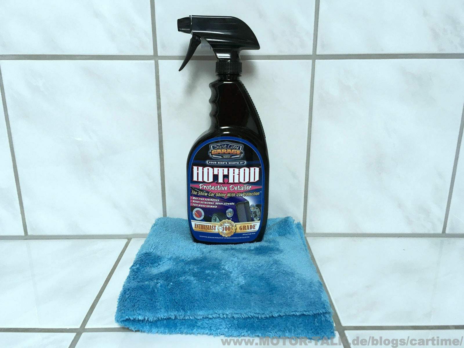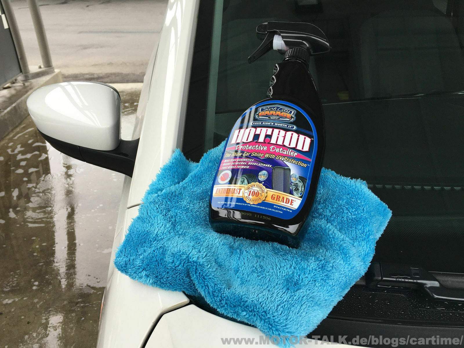 Wie für einen Detailer gewohnt wird er auf den Lack gesprüht mit einem weichen Tuch verteilt und mit einer neuen Seite die Reste abgenommen. Die pinke Flüssigkeit riecht richtig lecker. Erinnert mich etwas an Weihnachten?! In dem Detailer sind übrigens keine Wachsanteilen enthalten! Bei der Sprühflasche ist mir etwas besonders positives aufgefallen. Und zwar den sehr feinen Sprühnebel, den die SCG Flasche ausgibt. Das hilft beim Produktsparen.