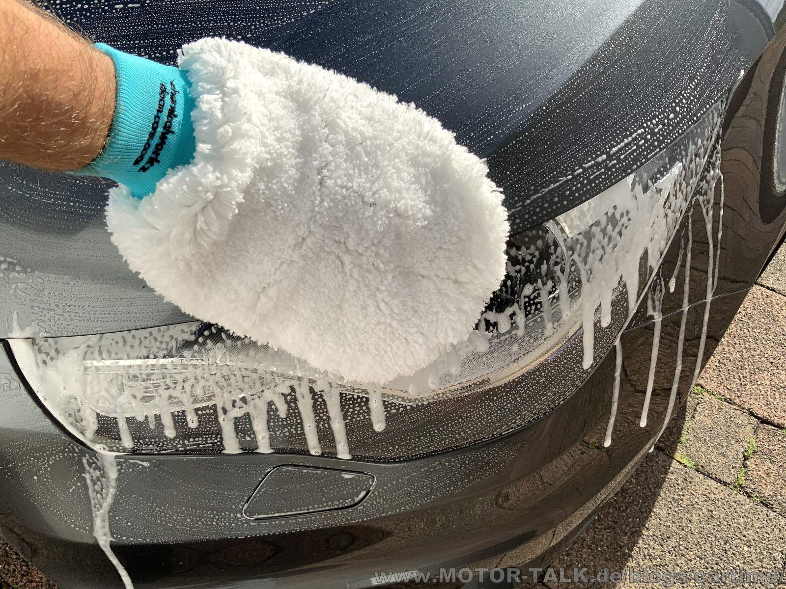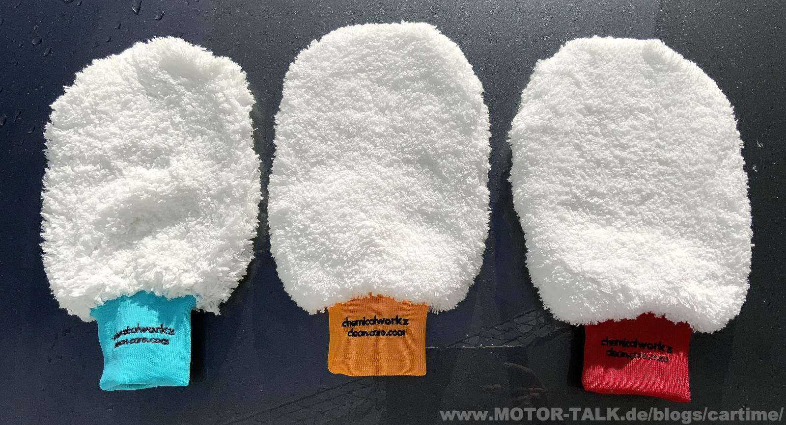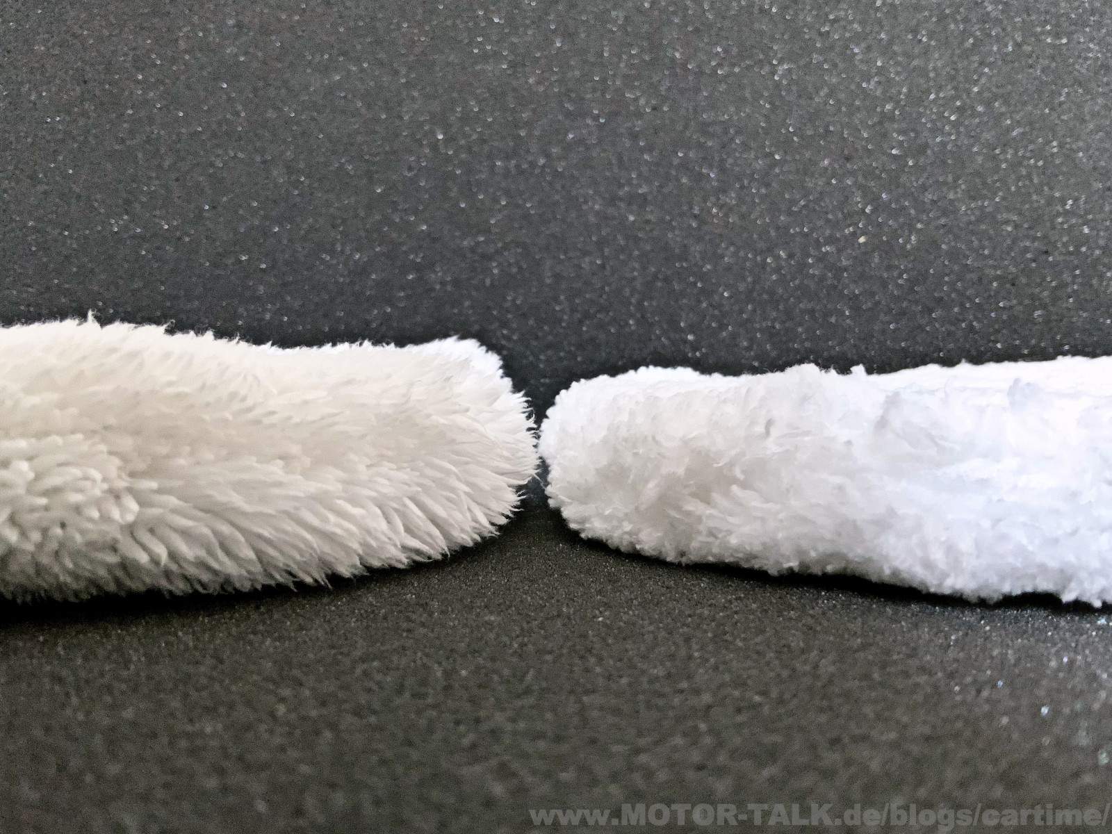 Der ChemicalWorkz Wash Mitt gleitet super über den Lack, wie auch der Petzoldt's. Waschwasser wird aufgenommen und wieder abgegeben. Schmutz lässt sich super erkennen und auch wieder auswaschen. Man kommt auch in kleine Bereichen und Ecken da der Handschuh nicht so dick ist. Könnte evtl. für andere auch ein Nachteil sein?! Ich sehe es als Vorteil.