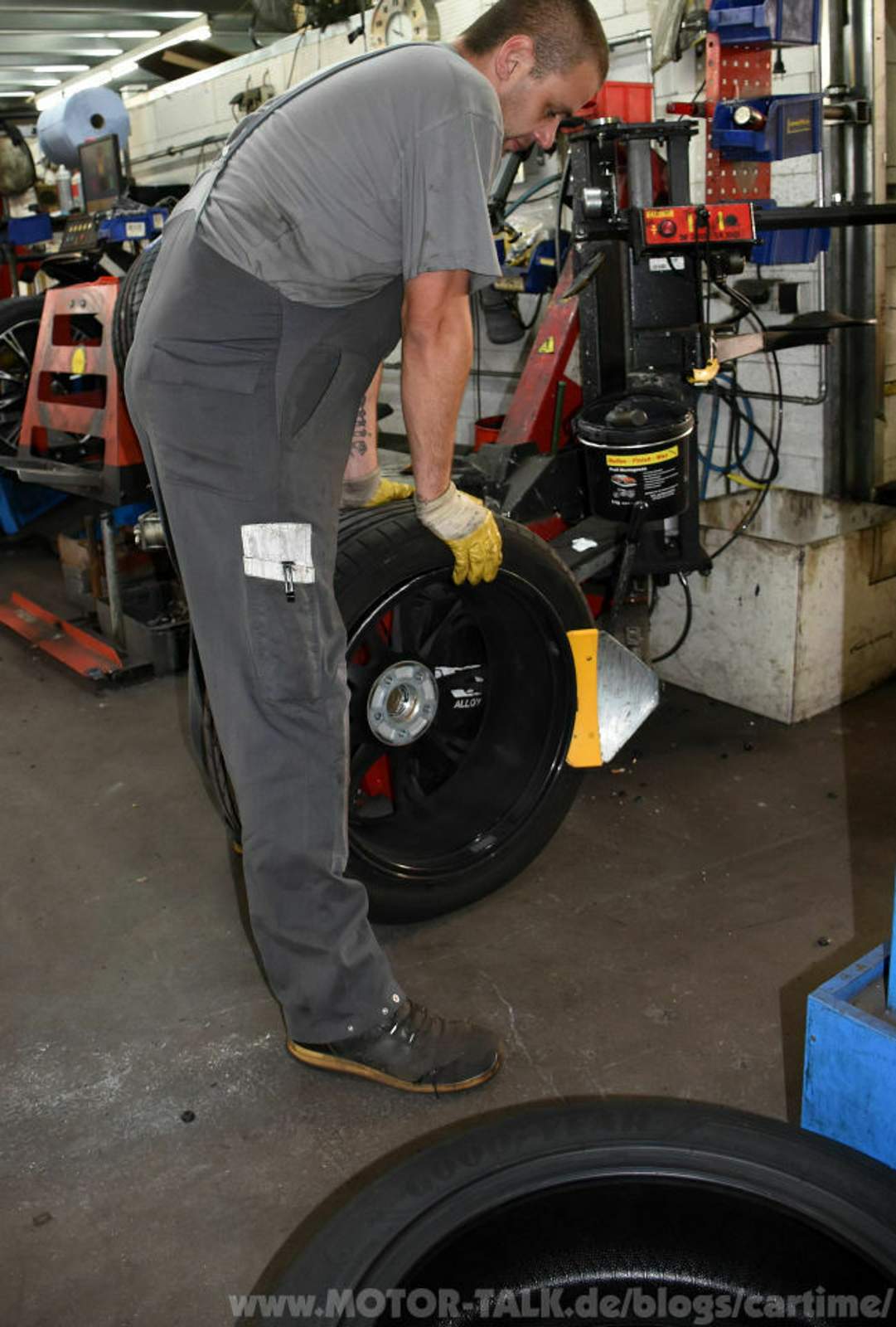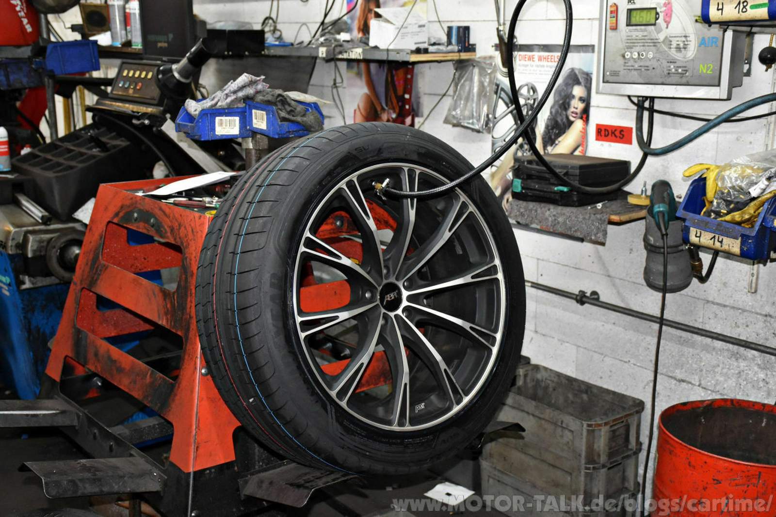 Montiert wurden die ausgesuchten Reifen in der Reifenwerkstatt vom Quick Reifendiscount Köln. Dort in der Früh angekommen erblickte ich gleich hinter der Eingangstür eine Bärchenfelge. Ob ich die hätte nehmen sollen?!