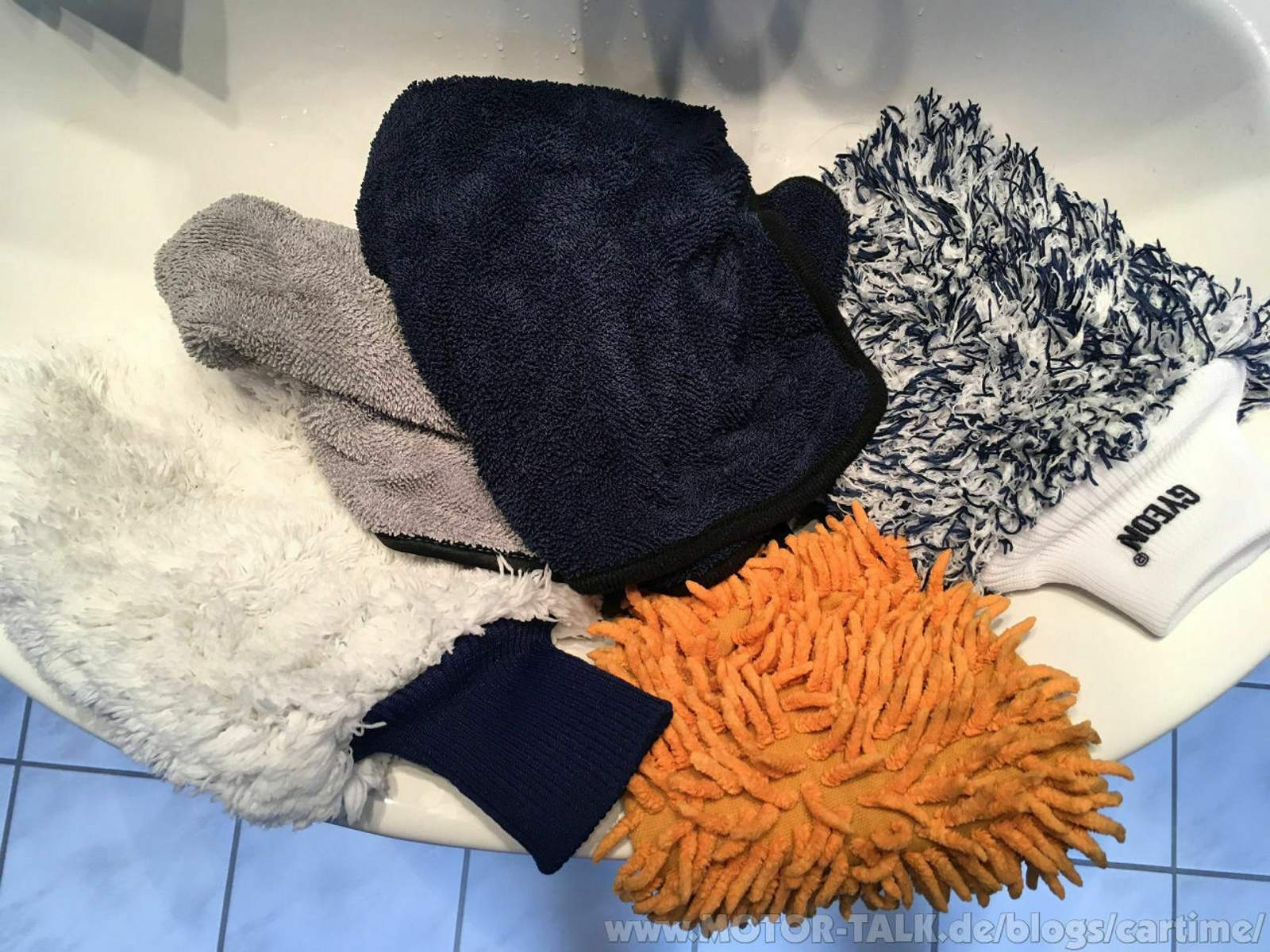 Da ja auch die Handwäsche mit dem Gsf als Shampoo möglich ist spart man sich ein Produkt. Die angegebene Dosierungsmenge von 50 ml auf 10 Liter fand ich etwas viel. Habe einen 18 Liter Wascheimer und das wären dann fast 100 ml. So habe ich es fürs erste mit ca. 70 ml versucht. Als ich mit dem harten Wasserstrahl in den Wascheimer zielte schäumte es sofort stark auf. Mit anschließend einer ordentliche Menge Shampoowasser auf dem Gyeon- und Petzholdt’s Waschhandschuh habe ich das komplette Fahrzeug gewaschen. Mit dem 2-Eimer-Prinzip und wieder mit dem herrlichen Kirschduft in der Luft. Abgetrocknet habe ich mit dem New Marlin. Für die Felgenwäsche habe ich diesmal einen einen preiswerten Zottelhandschuh genommen. Das geht auch wunderbar. Fürs innere Felgenbett muss ich dann später wieder die Felgenbürste rausholen.