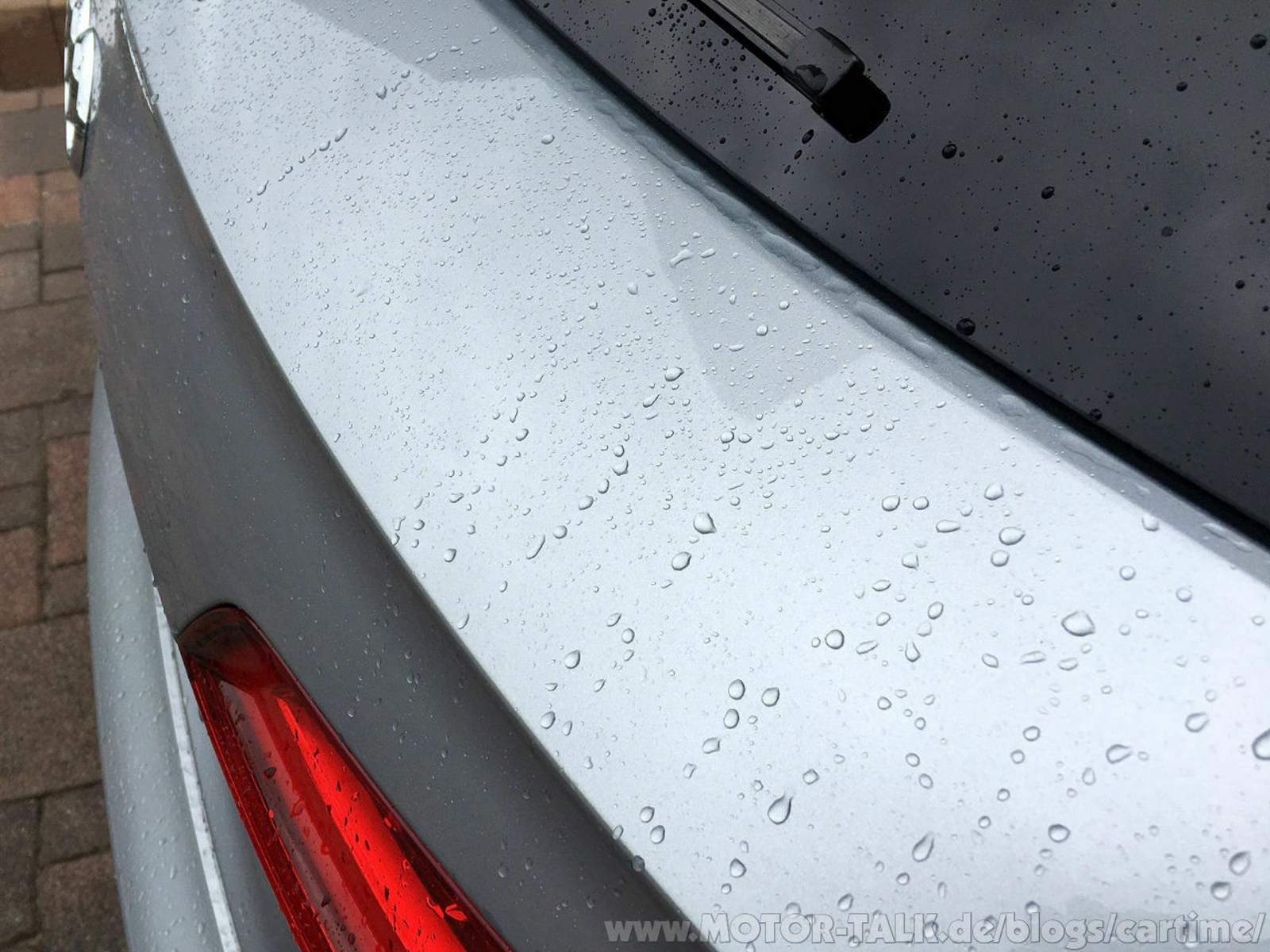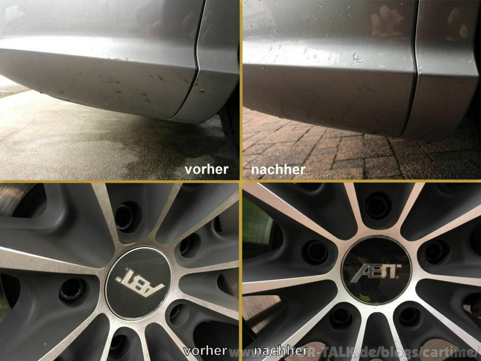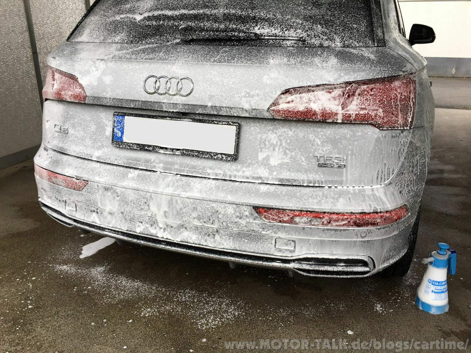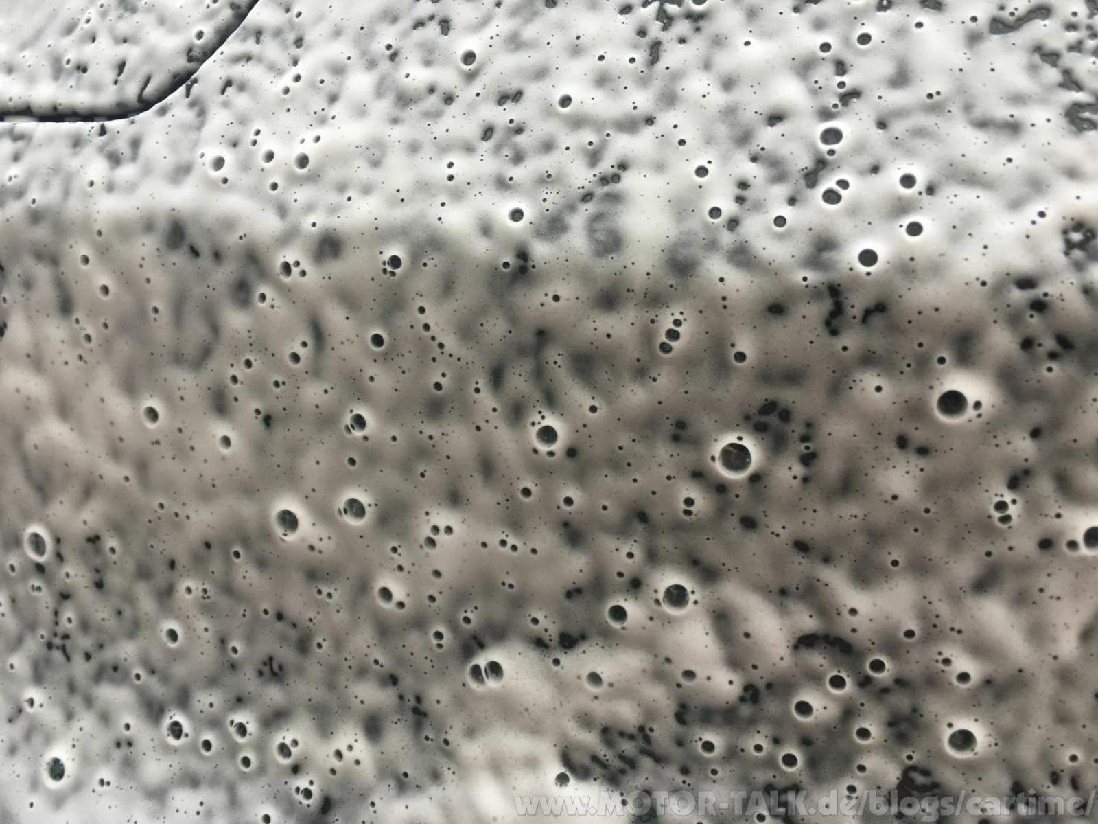 Die Reinigung mit dem Gentle Snow Foam bei der Vorwäsche ist sehr gut gelungen. Es wurden fast alle groben Verschmutzungen abgenommen. Gerade unten an der Heckstoßstange befand sich hinten einiges. Leichter Schmutzfilm ging gleich beim abspülen mit der Hochdrucklanze mit runter. Auch Felgen und matte Flächen lassen sich damit vorreinigen. Die Variante mit 25 ml und dem roten Gloria Filter hat mir am besten gefallen. Evtl. versuch ich es nächstes mal mit 30 ml. Nicht wundern das die vorher nachher Bilder einen anderen Untergrund haben. An der Waschbox waren hinter mir schon neue „Auto-Wäscher“. Die haben ihr Auto mit der Besenlanze malträtiert. Schreck lass nach.