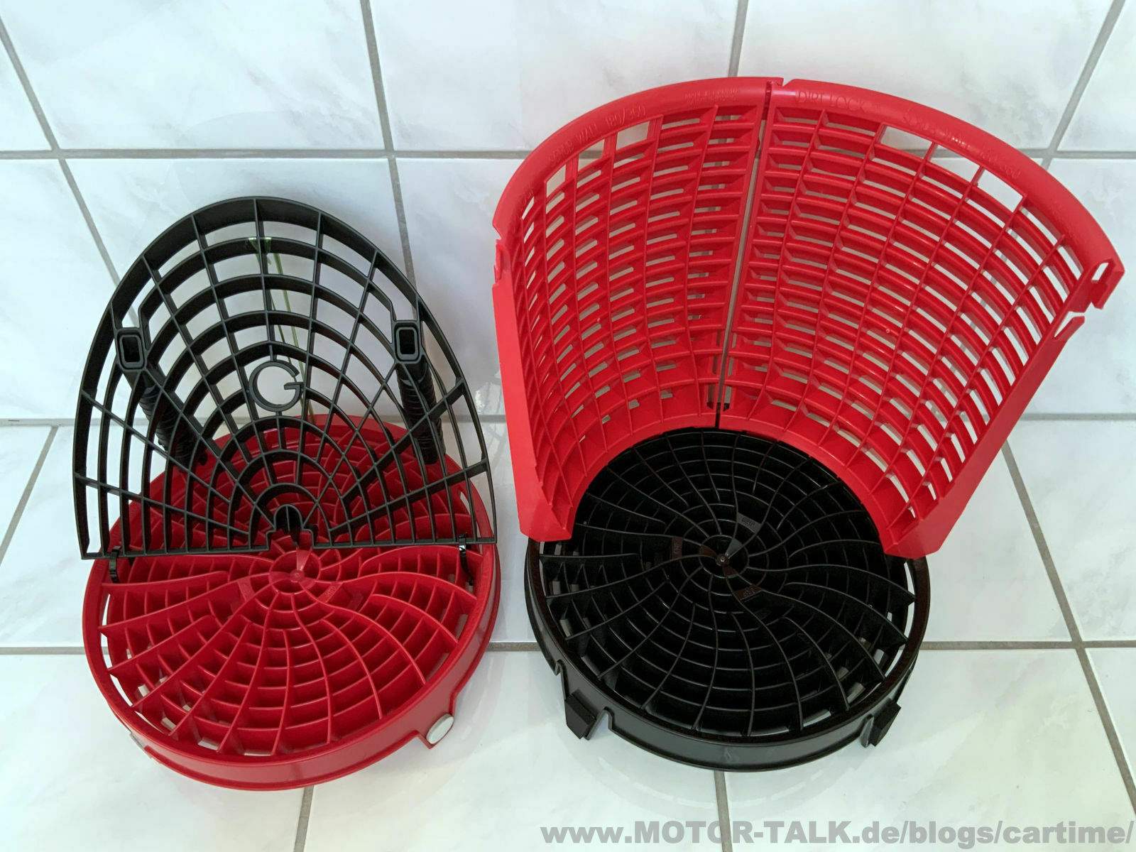 Früher war auf dem Gebiet Grit Guard einer der wenigen Hersteller für Schmutzfallen / Siebeinsätze. Dann kam vor ein paar Jahren The Detail Guardz. Sie haben das System weiter verbessert und man kann sagen, das diese Dirt Lock Schmutzfalle nun, wenn nicht die beste auf dem Markt ist. Auch das seitliche Gitter haben sie verbessert. So gab es damals auch von Grit Guard das Washboard. Hier ein paar Bilder von meinem damaligen Eigenbau aus beiden Welten im Vergleich…