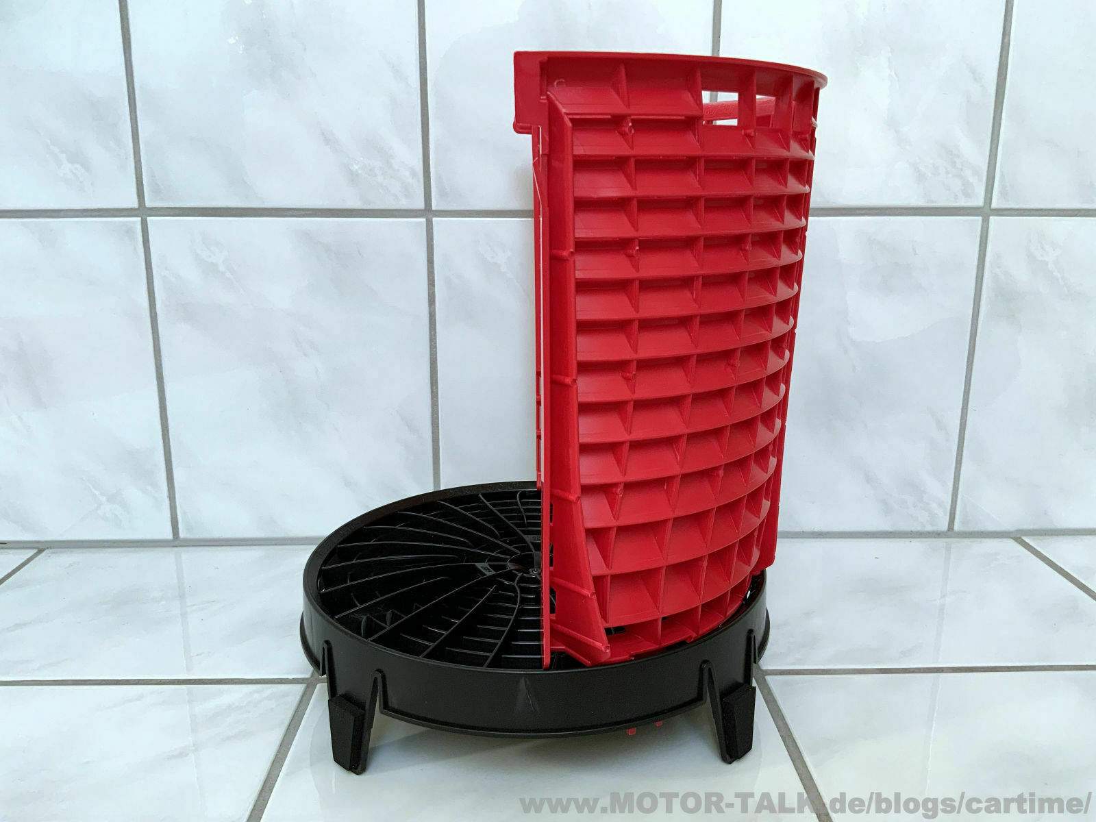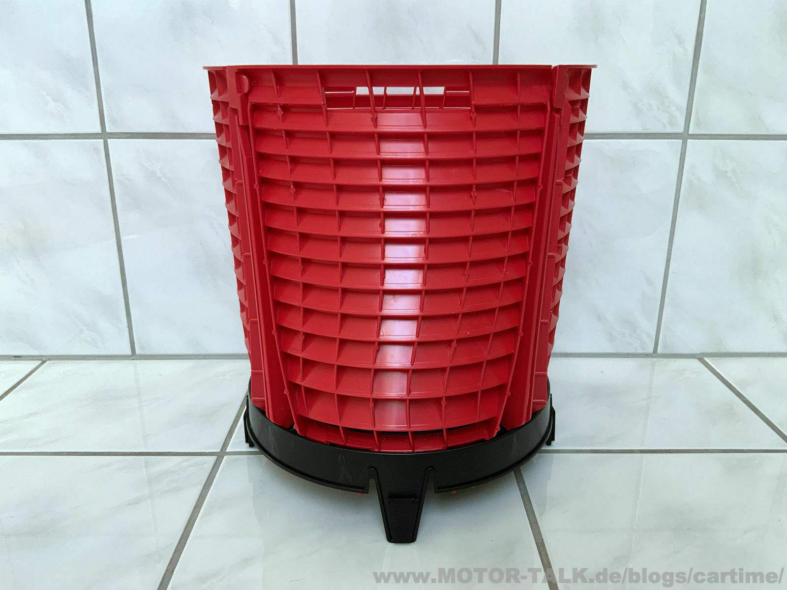 Nun gibt es ja kleine (meist 13 L) und große (meist 22 L) Gallonen Wascheimer. Ich muss sagen im Großen macht es mehr Sinn. Es geht fasst bis oben an den Rand. Dort wurde etwas Platz gelassen für Deckel oder ähnliches. Aber es würde rein theoretisch auch in einen kleinen Wascheimer passen, steht dann oben nur etwas ab. Ist also nicht sonderlich schlimm.
