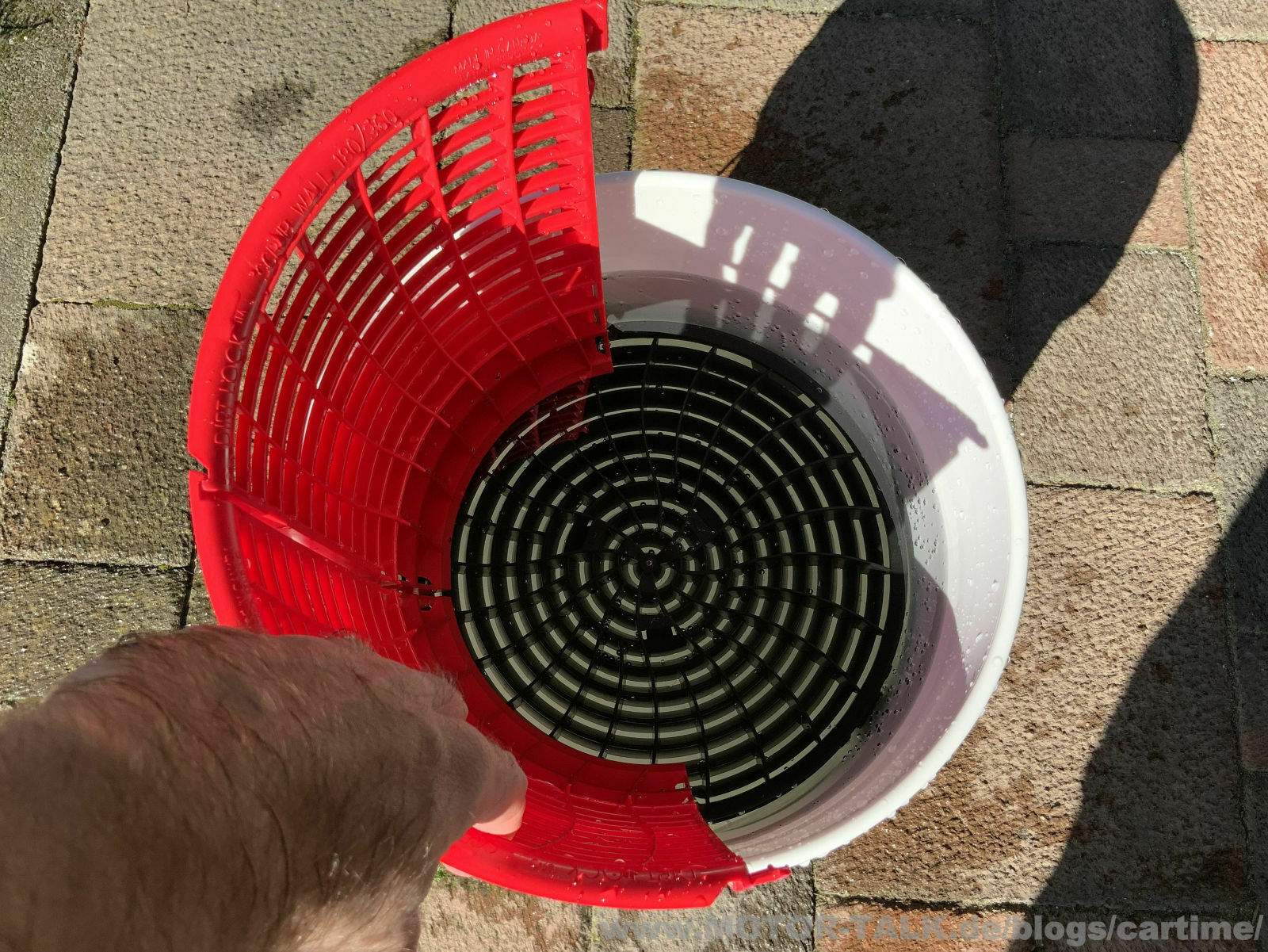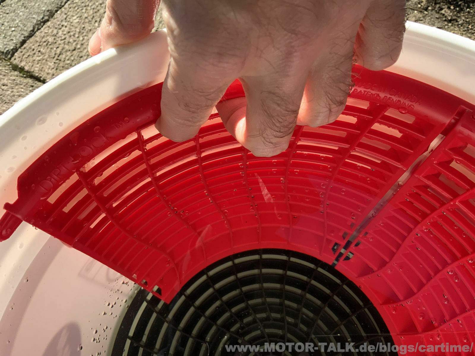 Detail Guardz hat mitgedacht und für das Herausnehmen oben Griffe an der Scrub zum einfachen herausziehen eingebaut. Klappt bei der 180 und 360 Grad Version. So könnt ihr das ganze System aus eurem Eimer herausnehmen und bei Bedarf mit Wasser abspülen. Das geht auch an der Dirt Lock unten. Jetzt hat man so zwei Möglichkeiten.