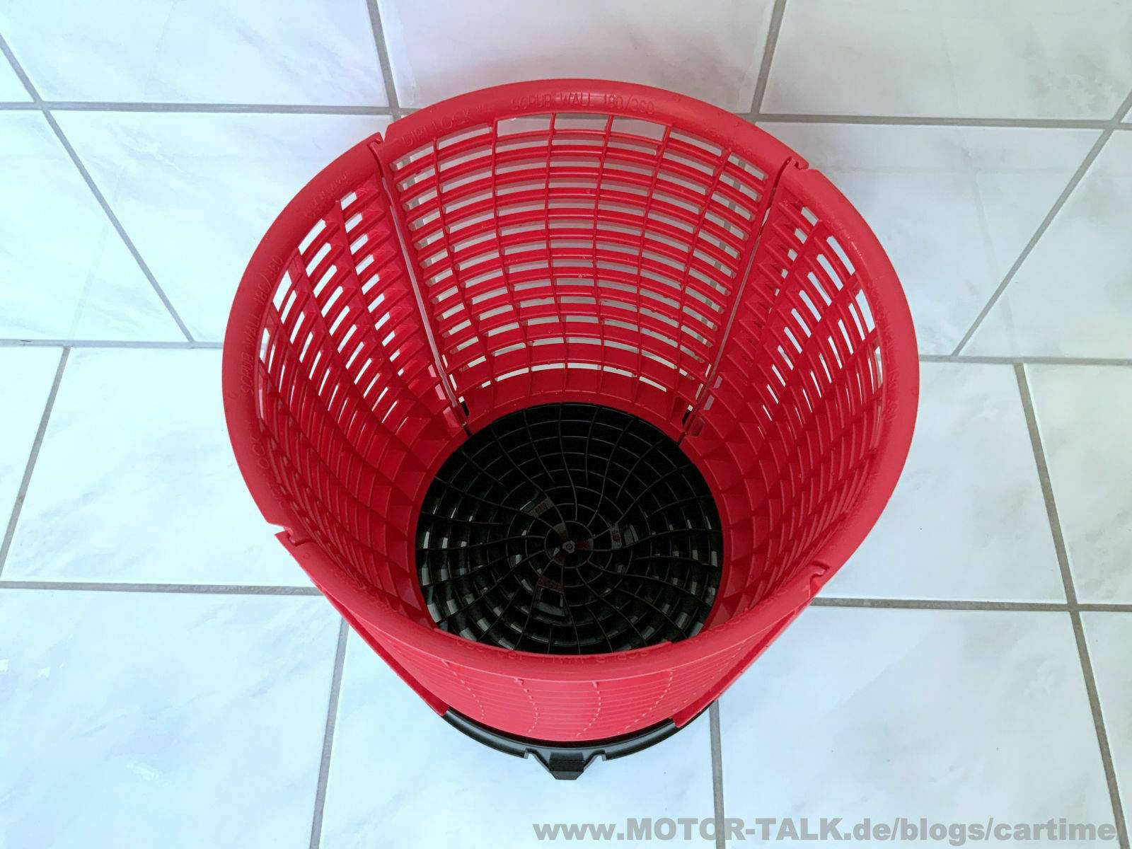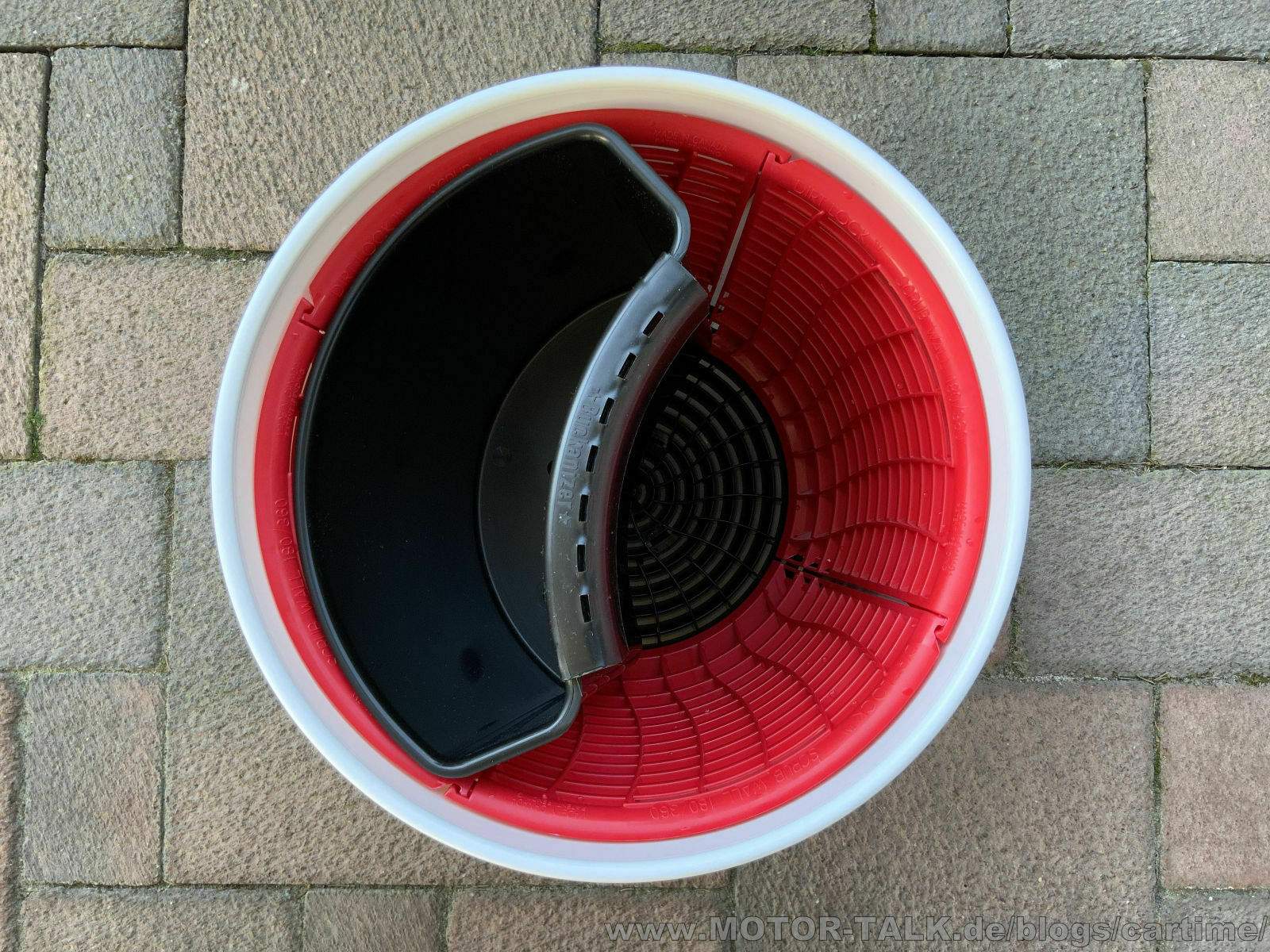 Bei einem weißen Wascheimer, was ja die meisten doch sind, empfehle ich euch eine bunte oder dunklere Farbe. Also eher nicht weiß. So ist es einfacher Sie nachher, im nicht mehr klaren durchsichtigen Wasser zu finden. Gilt speziell für die 180 Srub Variante. Bei der 360er ist das egal, dort werdet ihr immer die richtige Stelle zum Auswaschen finden. Ich habe mich ja für die Kombi in schwarz rot entschieden. So wie ich sie vorher auch hatte. Sieht einfach super aus.