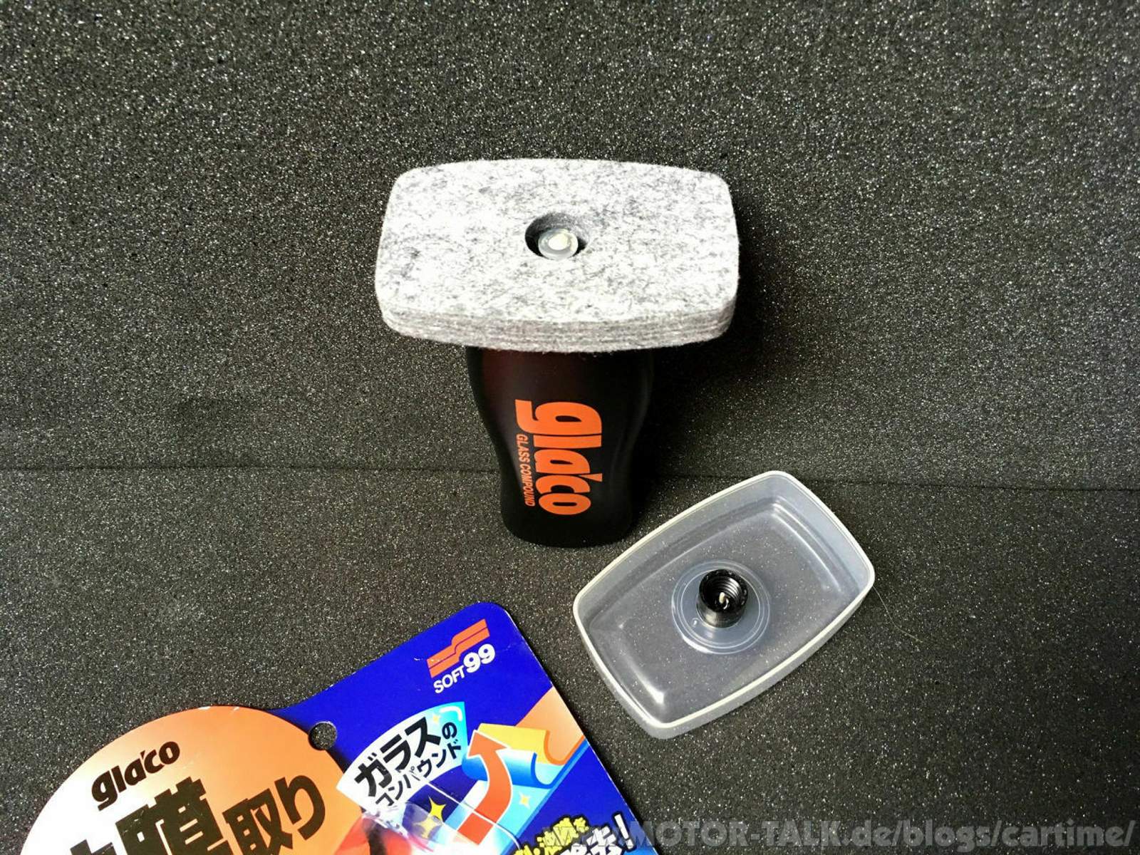 Hatte man zuvor schon eine Scheibenversiegelung oder stark festgebrannte Verschmutzungen auf dem Glas ist es gut als Vorbereitung eine porentief reine Scheibe ohne jegliche Verschmutzungen zu haben. Dafür ist die Glaspolitur Glaco Glass Compound Roll On gedacht. Dadurch ist sicher gestellt das, neben allen festsitzenden starken Verschmutzungen (die auch beim Kneten nicht weggehen) auch alte Scheibenversiegelungsreste mit entfernt werden. Somit kann man maximale Standzeiten der neuen Versiegelung erreichen.