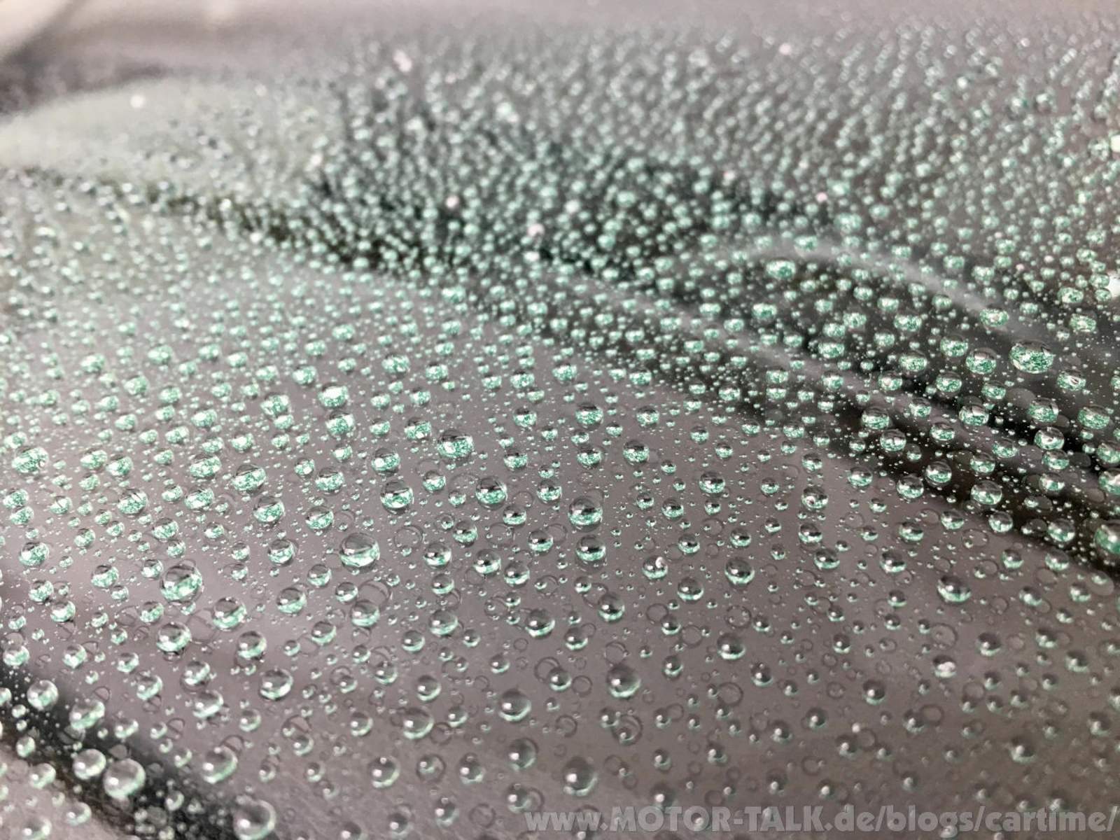 Unter den angegebenen km/H Zahlen verwende ich den Wischer auch weiterhin. Manchmal auch auf der Autobahn, kommt immer drauf an. Allerdings werden die Wassermaßen der zu überholenden LKW‘s nicht mehr so krass auf der Scheibe verteilt. Ebenso die vor einem Fahrender Fahrzeuge. Das ist durch das abperlen nicht mehr möglich. Und was ich jetzt im Sommer gemerkt habe, bekomme die Insekten viel leichter ab.