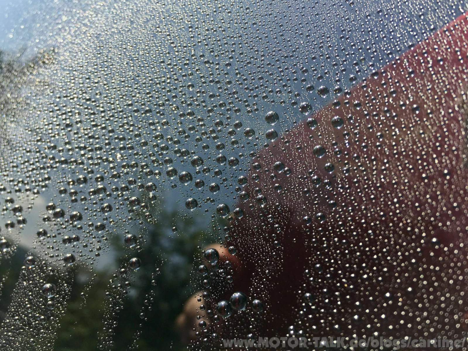 Der Abperleffekt bei Ultra Glaco wirkt ab 60 km/h, Wassertopfen werden von der Windschutzscheibe durch den dann entstehenden Fahrtwind weggetragen. Im Stand bilden sich auch wieder wie beim Roll On richtig tolle Wasserperlen. Die Standzeit beträgt aber im Vergleich ein vielfaches, nämlich bis 12 Monate.