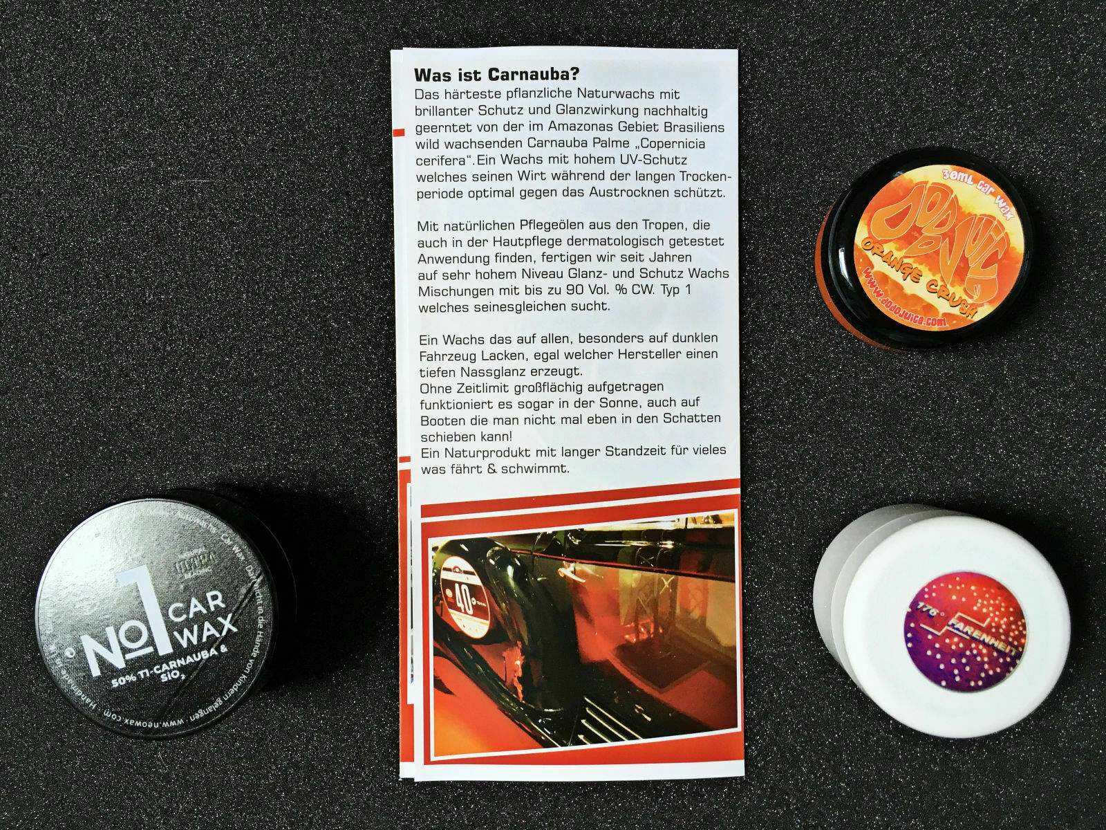 Viele kennen sie, die unzähligen kleinen bunten Wachsdosen von Dodo Juice. In den verschiedensten Duftrichtungen. Hier mit dabei, das Orange Crush. Es ist eigentlich für warme Farbtöne. Aber das auch Jacke wie Hose. Von den Dodo Juice Wachsen hört man ja auch oft nur gutes. Sie kommen nicht, wie von Dodo Juice in zahlreichen Joke’s behauptet aus Mauritius.