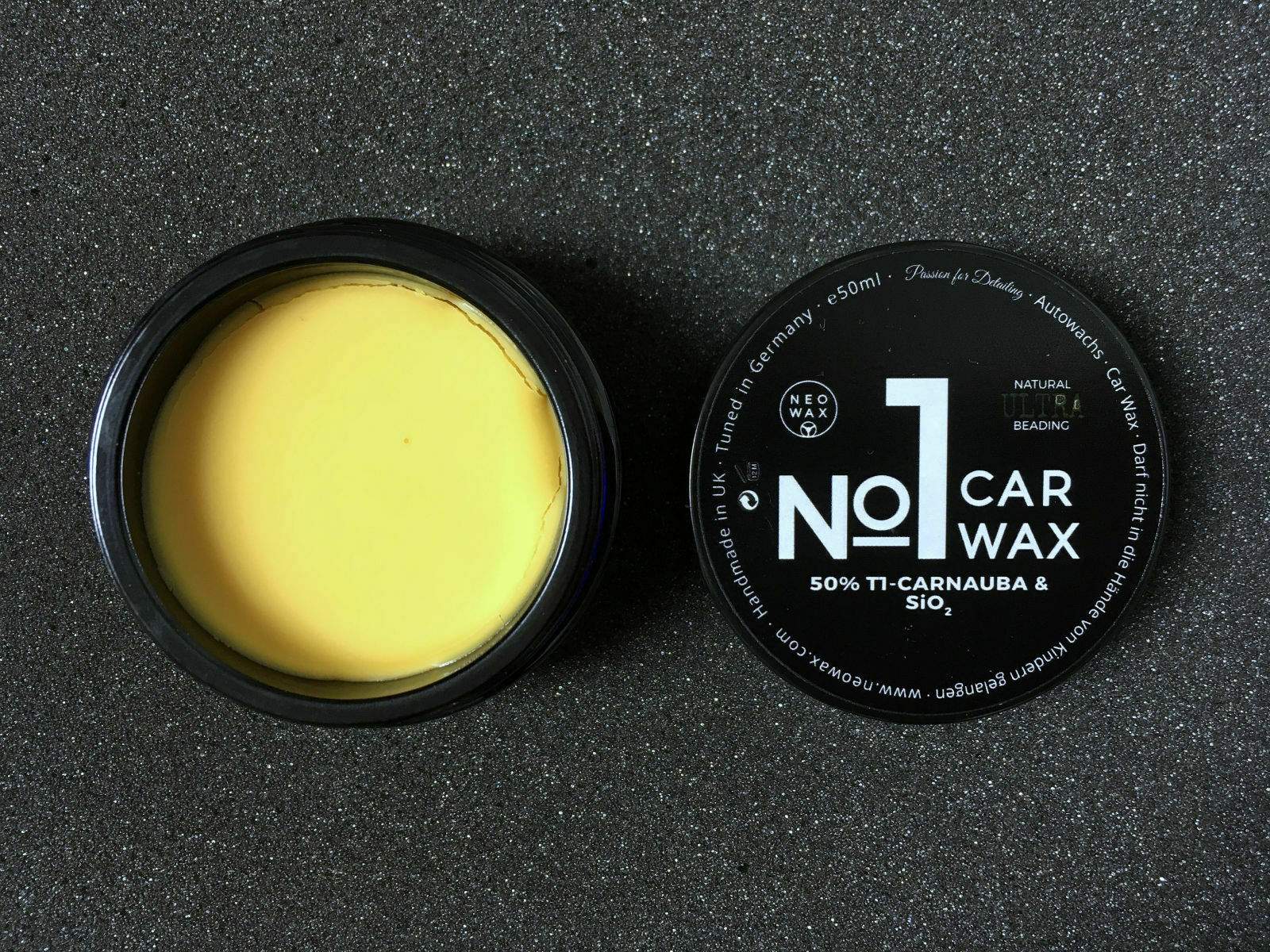 Mit einer der Favoriten in den letzten Jahren war das Neowax Car Wax No 1. In Sachen Standzeit und Beadingverhalten war es immer vorn mit dabei. Mal sehen, ob dem immernoch so ist. Ich bin gespannt. Es ist der erste Kandidat im Wachs-Trio.