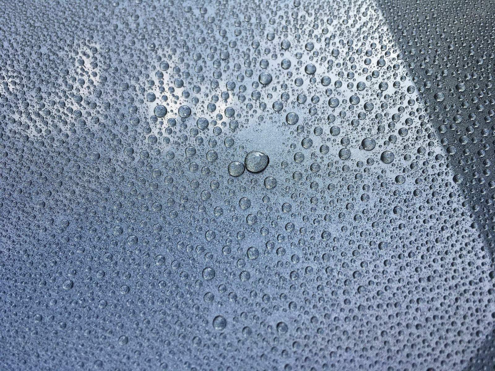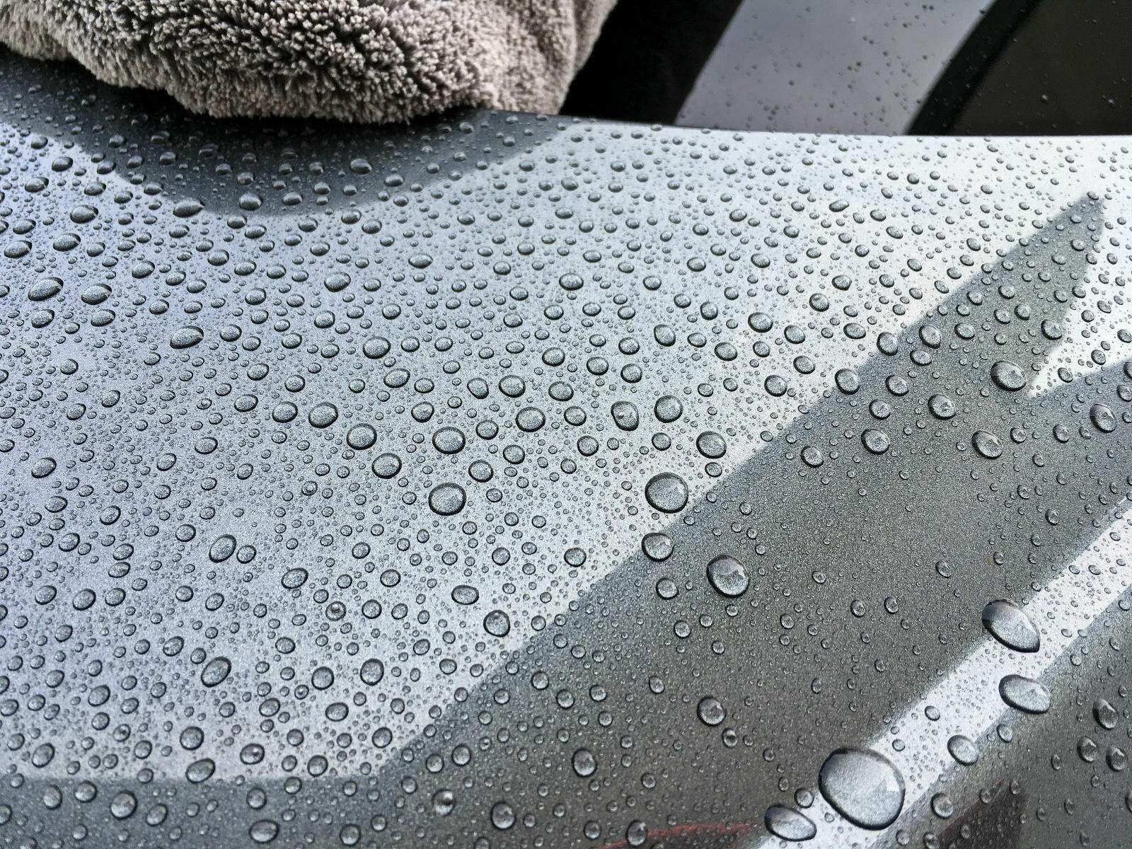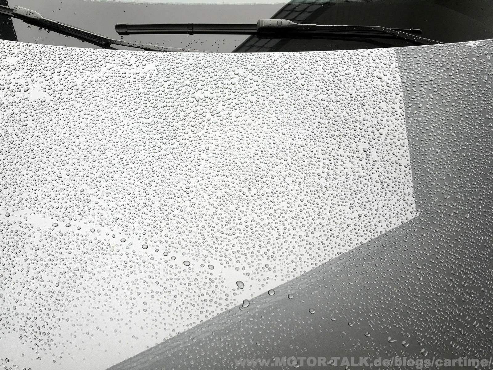 Ich melde mich zurück mit einem Update. Wie viele schon wissen handelt es sich bei dem "Testfahrzeug" um ein Garagenfahrzeug. In der Testzeit wurde seitdem zwei mal mit dem Petzoldt's Spezial Mattlack-Shampoo gewaschen. Das ist ein Shampoo ohne jegliche Wachs- oder Glanzanteile. Dieses Shampoo habe ich speziell gewählt, da auch nichts das Tropfenbild abfälscht! Folgende Bilder sind nach dem Waschen entstanden. Schaut mal:
