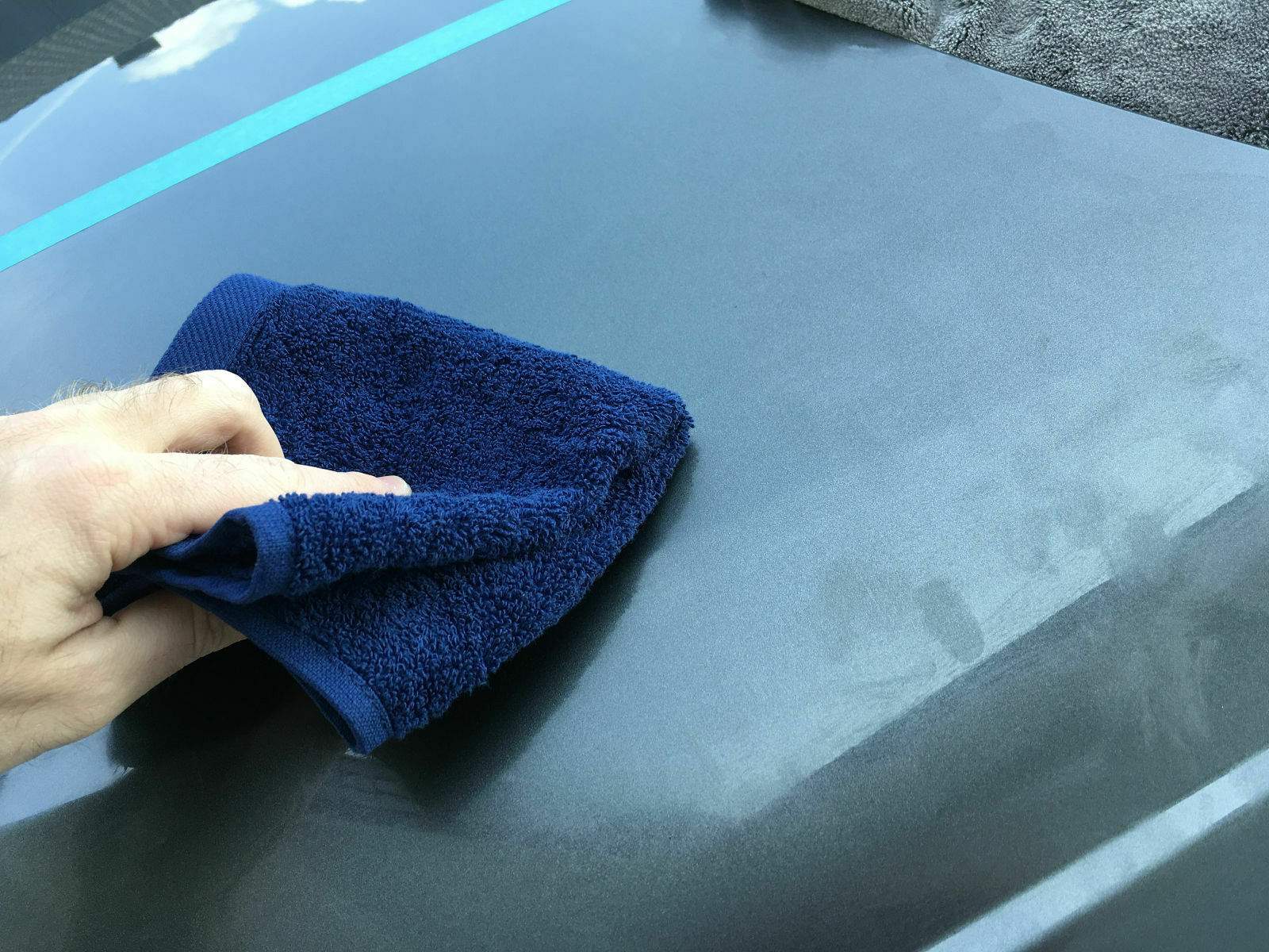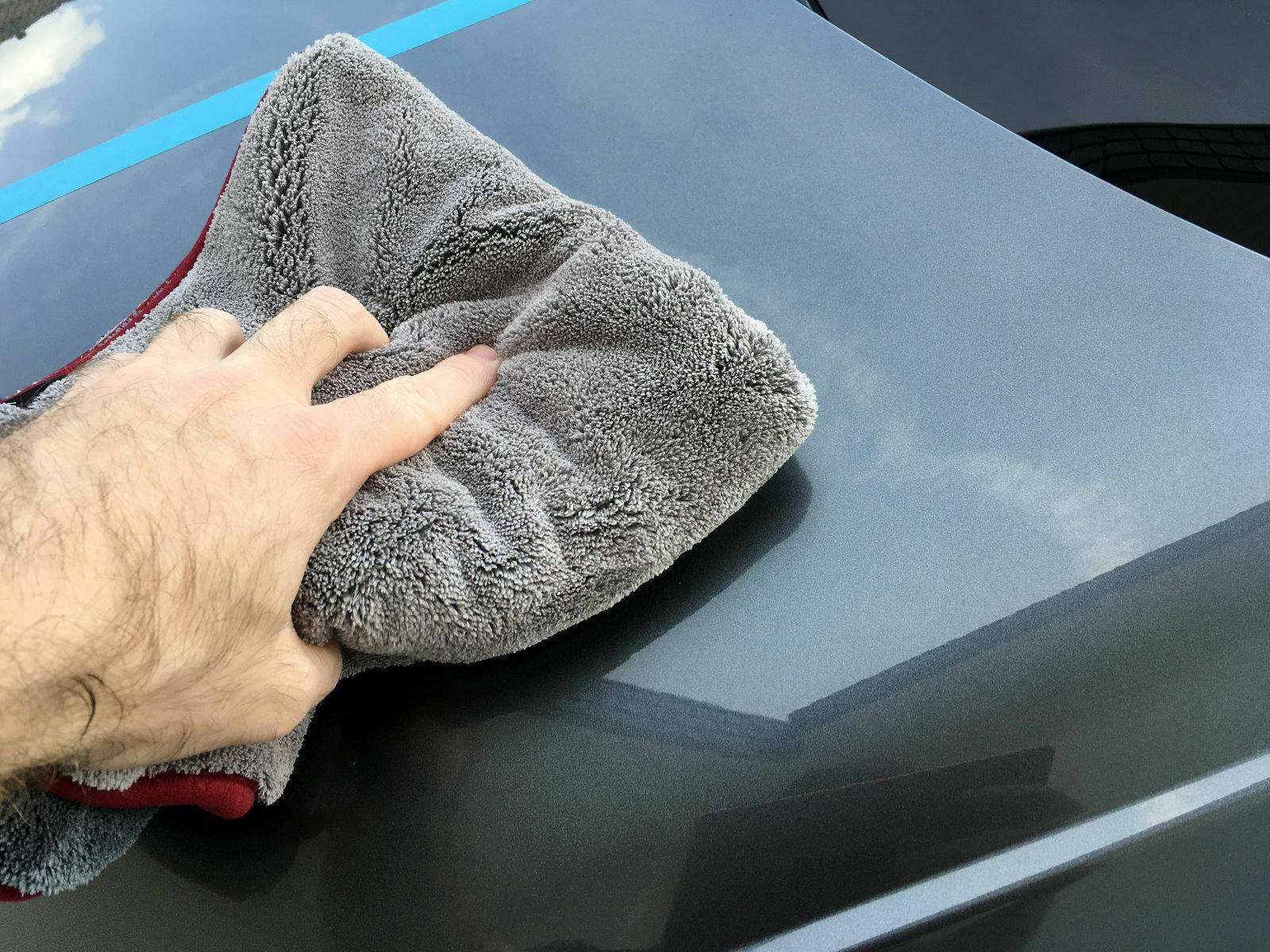3. Mit einem sauberen Mikrofasertuch auspolieren. Da kommt das Dodo Juice Buffing Towel Mikrofasertuch zum Einsatz.