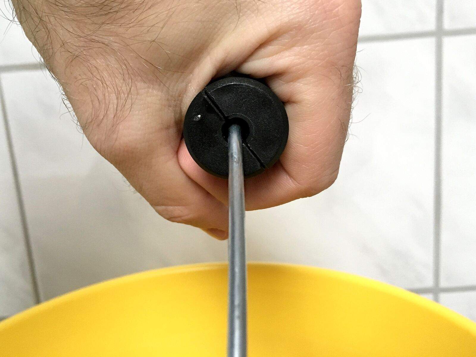 Anschließend setzt man den Eimer in die Halterung und fixiert ihn mit drei variablen Schraubverschlüssen. So passt auch jeder Gallonen Eimer rein.