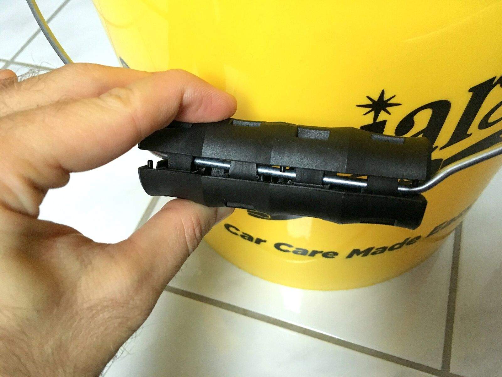 Gerade bei großen mit Wasser gefüllten 18,9 L Wascheimern ist der normale weiße Griff oft etwas klein. So habe ich die Snappy Grip's bei HQS entdeckt. Das sind größere und griffigere Eimergriffe, die deutlich besser in der Hand liegen. Das macht gerade bei großen Eimern Sinn, da sie so im vollen Zustand angenehmer zu tragen sind. Farben gibts auch viele, ich glaube sogar pink.