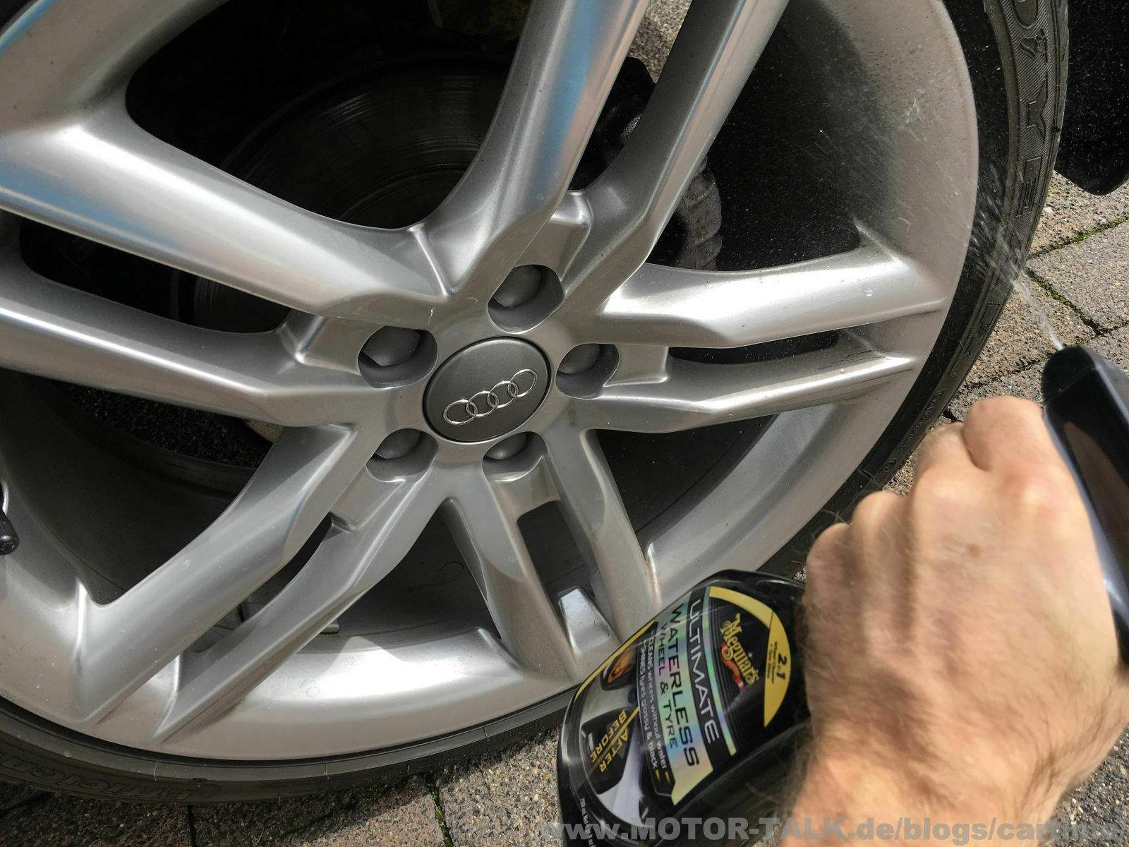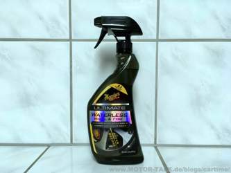 es stand mal wieder eine Neuheit auf meiner Agenda. Das Meguiars Ultimate Waterless Wheel & Tire. Es handelt sich dabei um ein Spray, mit dem man seine Felgen bei leichter Verschmutzung ganz ohne Wasser reinigen kann. Geeignet ist es für alle Felgenarten. Denke das ist eine ganz interessante Möglichkeit, wenn man mal auf die schnelle die Felgen und Reifen waschen möchte. Ganz ohne sein ganzes Equipment auspacken möchte oder nicht zur Waschbox möchte. Natürlich ein weiterer Hauptgrund, wenn man gar kein Wasser zur Verfügung hat, in der Nähe des Fahrzeuges. Habe gerade auch keinen anderen Hersteller auf dem Schirm, von dem es so ein Produkt gibt. Also klar gibt es viele Waterless Produkte für den Lack, aber für die Felgen fällt mir da gerade keins ein.