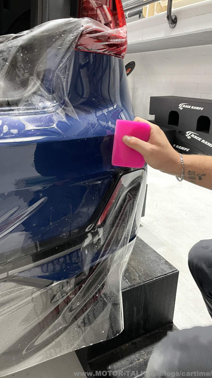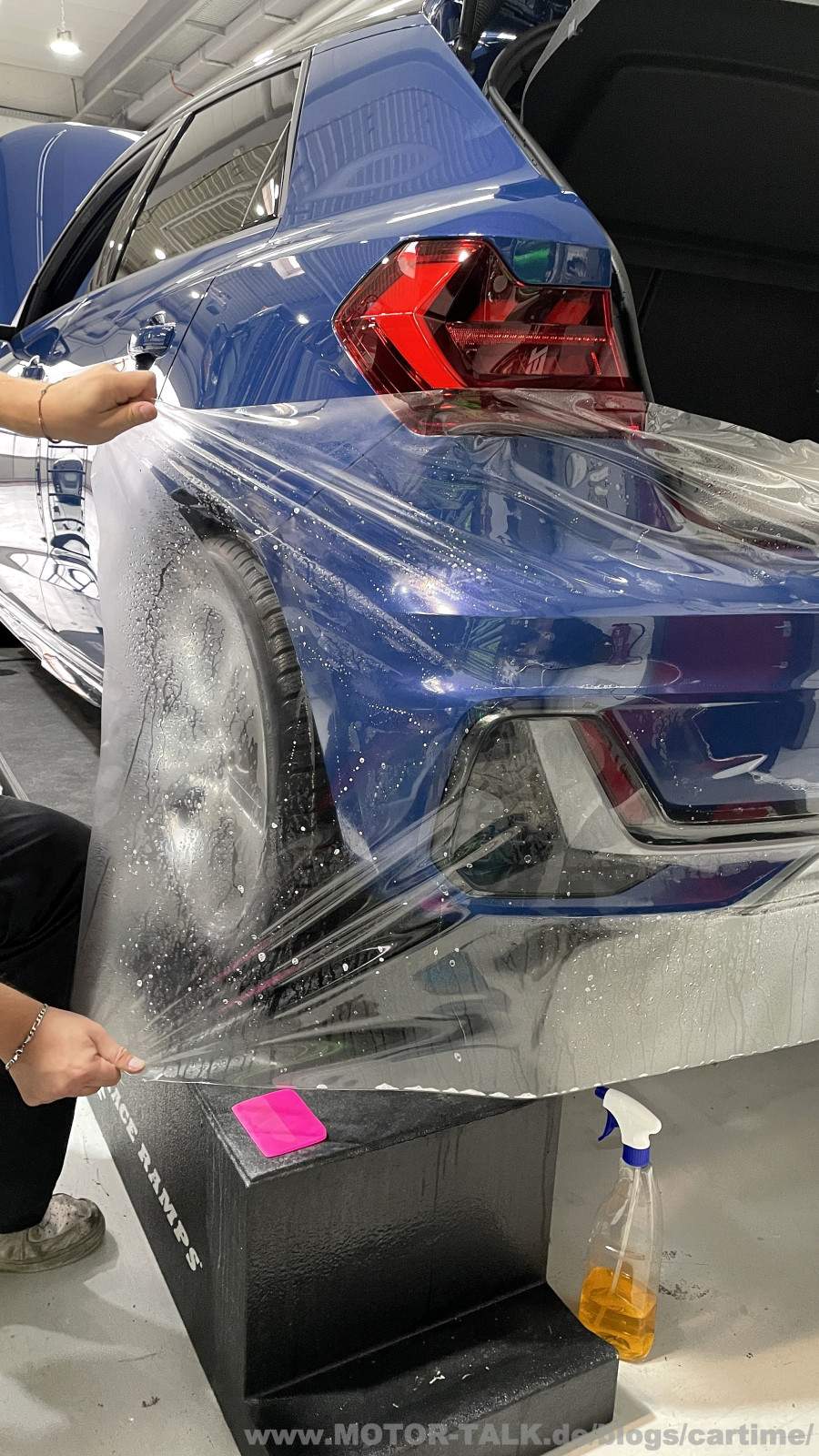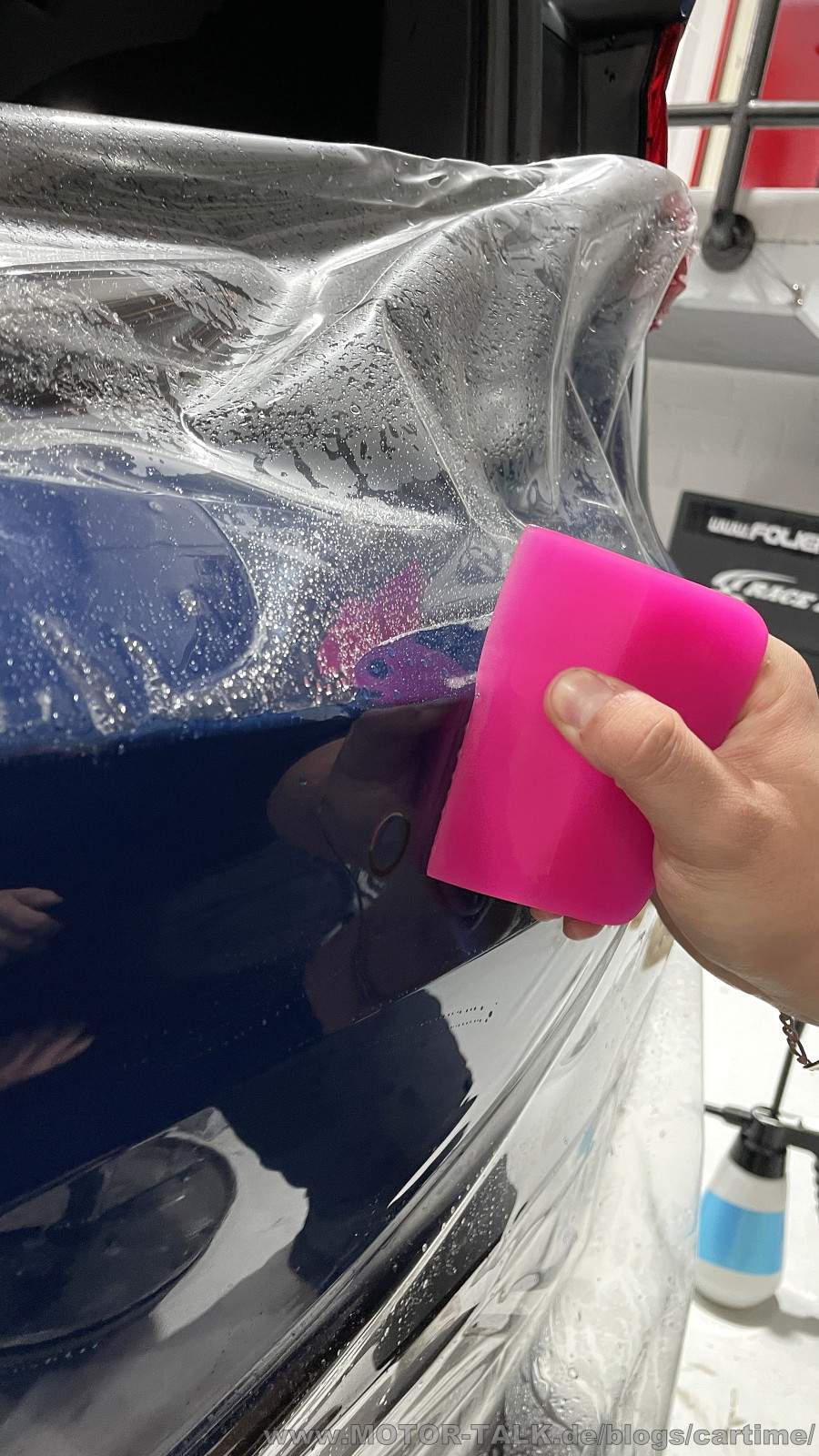 Im Folierbetrieb NRW Foliencenter in Haan haben sie mir die XPEL Ultimate Plus Lackschutzfolie vorgeschlagen. Das ist eine selbstheilende Folie, die bis zu einem gewissen Grad kleine Kratzer, Swirls selbst entfernen kann. Das geschieht durch Wärme, oft reicht dafür auch schon Sonne. Zudem enthält sie ein Schutz gegen UV und äußere Einflüsse. Das heißt Insekten lassen sich besser entfernen. Die Heckstoßstange wurde auch noch mit gemacht.
