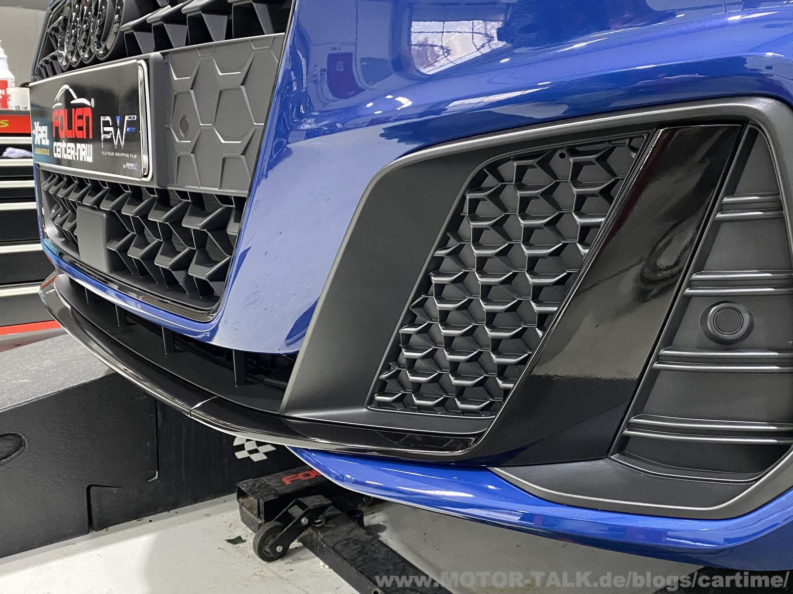 War optisch nicht 100% stimmig. Da er ja jetzt eh schon beim Folierer war, wurde das auch mit gemacht. Es wurde eine schwarze glänzende Arlon Folie foliert. Nun ist er ein All Black. Bis auf die S-Line Badges, die noch silber sind. Sieht klasse aus. Zurück zu der XPEL Schutzfolie…