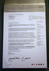 10.09.2009 - Heute habe ich über das Kontaktformular bei Audi gemeckert, da ich nach 6 Wochen immernoch keinen genaueren Termin habe. Mal schauen, ob es wirkt :-) |