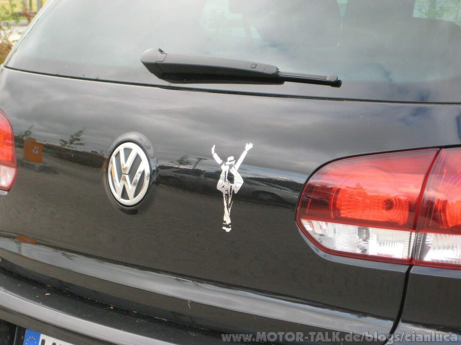 Cianluca ist Michael-Jackson-Fan und hat sich in Memoriam an Jacko aus ihrem Golf in eine MJ-Edition gemacht, siehe Aufkleber...