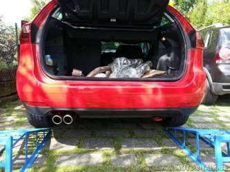 Ich habe es nun endlich geschafft, den FR-Auspuff nachzurüsten. Das wollte ich schon ewig tun, aber irgendwie hatte ich nie die Zeit dazu. Grund für die Nachrüstung ist weniger der beim Diesel eh nicht vorhandene Sound, sondern die Optik. Ich wollte einfach sichtbare Endrohre, und nicht das verkümmerte abgekrümmte Endrohr der Werksoptik. Sieht so einfach stimmiger aus.