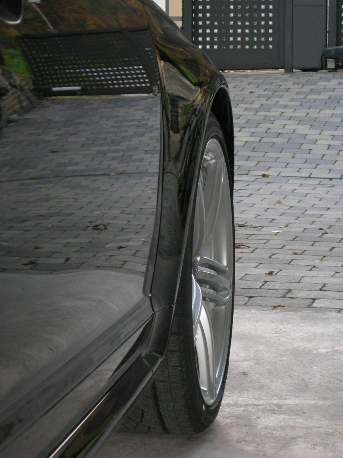 Da die Reifen allerdings durch die fehlenden 10 mm links und rechts nicht mehr bündig abschliessen, stehen und die Radläufe etwas hervor (siehe Bild), was optisch nicht so der Brüller ist, daher überlege ich, mir 10mm-Spurverbreiterungen für die Winterreifen zuzulegen, auch um mehr Freigängigkeit zwischen den vorderen Bremssätteln und den Speichen zu ermöglichen (da ist z. Zt. vielleicht nur 3 - 5 mm Luft). Was meint Ihr? Und welche Felgenoptik gefällt euch nun besser (Titanoptik oder Aluoptik)?