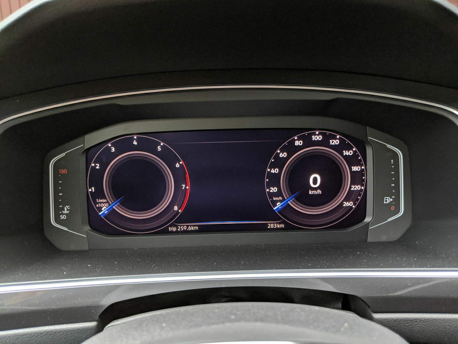 Ein weiteres Highlight ist das volldigitale Tachodisplay, von VW Active Info Display getauft. Von der Optik kommt es zwar bei weitem nicht an gut gemachte Analoginstrumente heran, wer aber die typischen VW-Standardtachos kennt wird im Vergleich zum Digitaltacho keine Enttäuschung erleben. Der Tacho lässt sich in unzähligen Arten konfigurieren und es gibt tonnenweise Zusatzmenüs die man sich anzeigen lassen kann. Ich glaube alleine da braucht es Wochen bis man wirklich alle Funktionen mal im Fahrbetrieb ausprobiert und durchgeschaltet hat. Das System kenne ich schon aus dem Passat GTE und auch dort konnte es schon begeistern. Wäre wohl eine Option die ich bestellen würde! Das alles ist Teil des Business Paket für gut 2000€, meiner Meinung nach gut angelegtes Geld.
